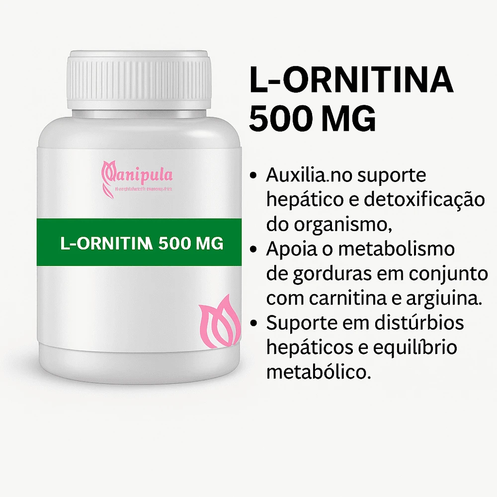 A L-Ornitina 500 mg é um aminoácido não essencial que participa do ciclo da ureia, auxiliando na eliminação do excesso de amônia e contribuindo para o bom funcionamento do fígado. Também pode atuar em conjunto com a arginina e carnitina, favorecendo o metabolismo energético e a mobilização de gorduras.