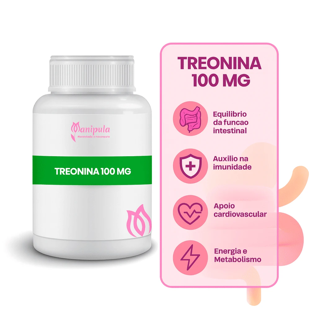A L-Treonina 100 mg é um aminoácido essencial que desempenha papel chave no metabolismo de proteínas, na produção de mucinas que protegem o trato gastrointestinal e na síntese de glicina e colágeno, fundamentais para a saúde do corpo.