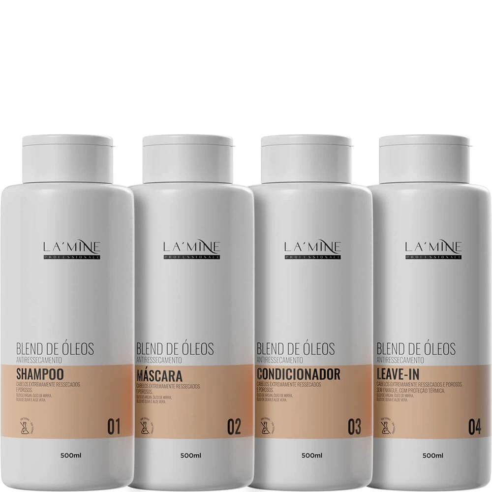 A linha Blend de Óleos da La’Mine é indicada para recompensar o déficit nutricional dos cabelos extremamente ressecados e expostos a agressões externas. Tem o poder de nutrir profundamente e fazer a reposição lipídica necessária. Proporcionando brilho radiante e disciplina.