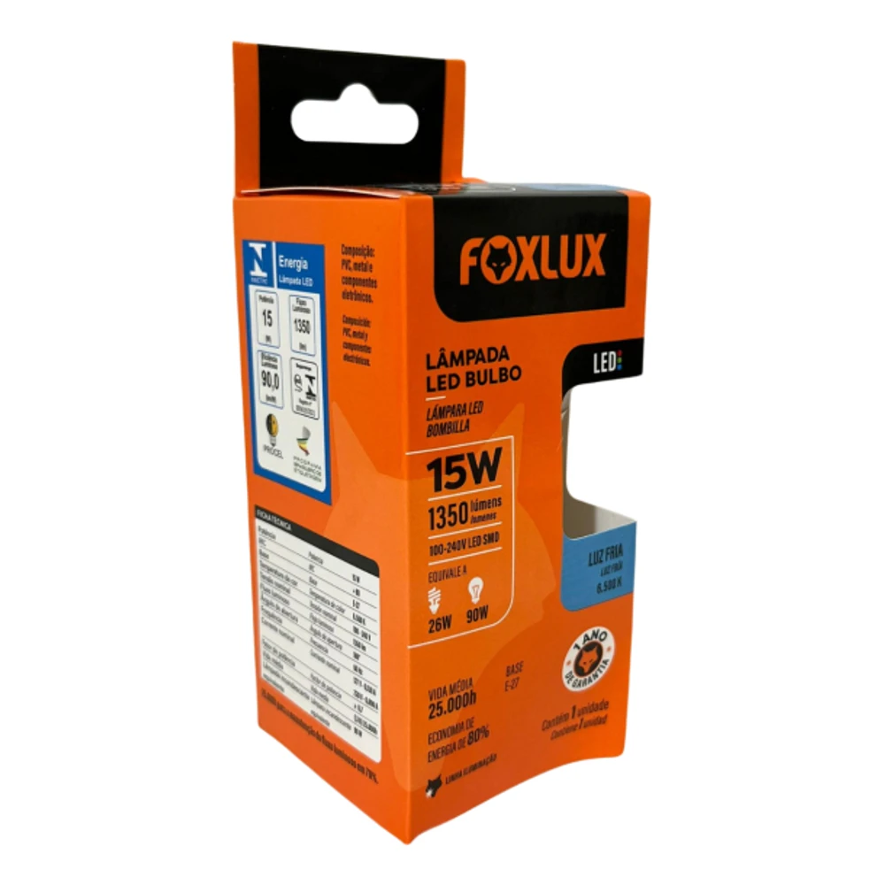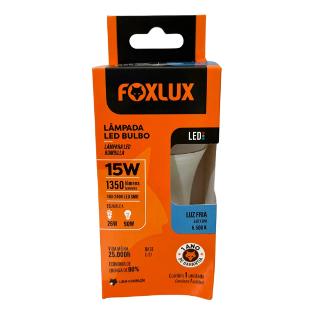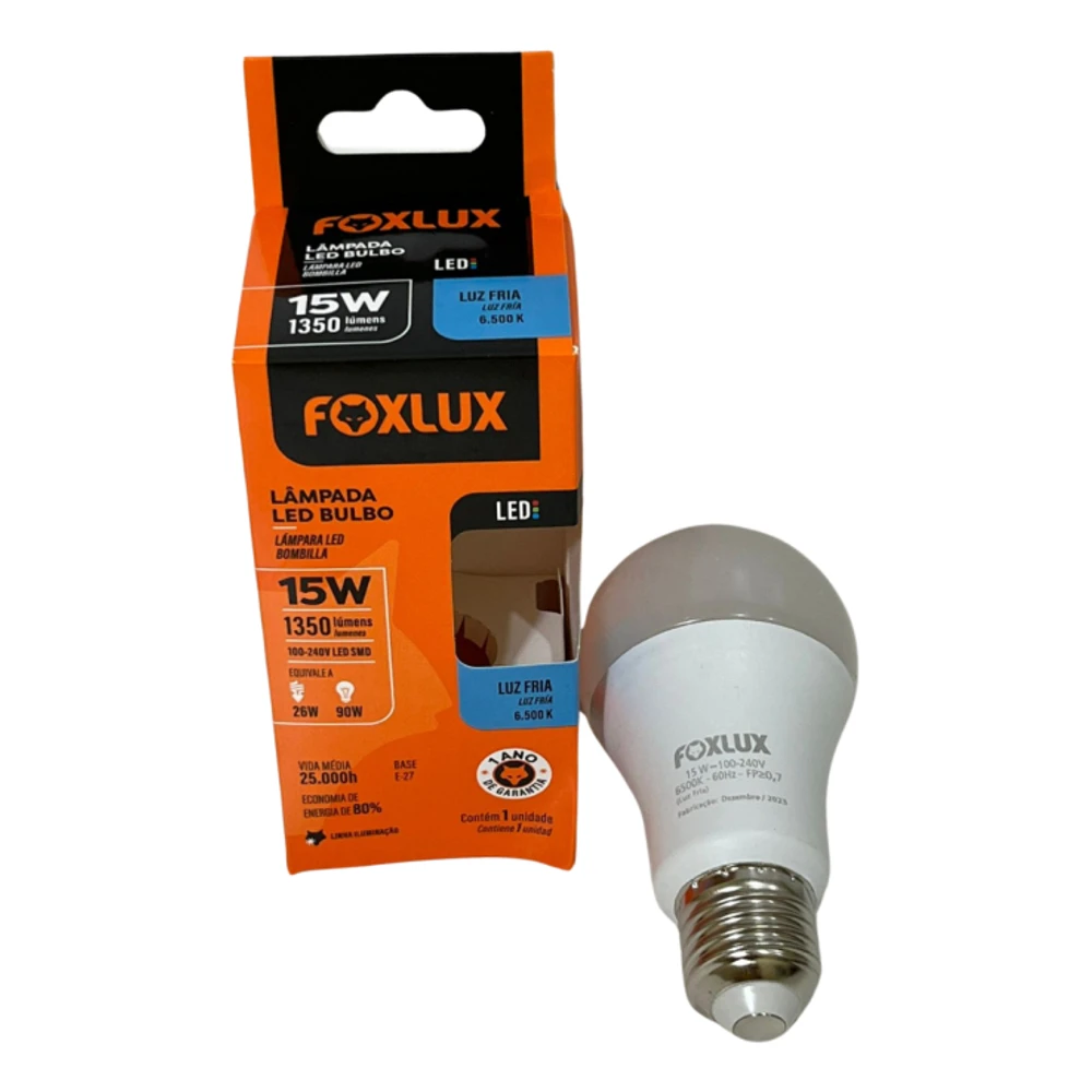 KIT COM 04 UNDLâmpada LED Bulbo Foxlux:Iluminação Brilhante, Economia Sólida e Durabilidade Garantida!A Foxlux apresenta a Lâmpada LED Bulbo, uma solução de iluminação poderosa com 15W de potência e 1350 lumens.Com uma temperatura de cor de 6500K, proporciona uma luz clara e revigorante.Esta lâmpada inovadora substitui as incandescentes, economizando até 80% de energia. Além disso, é bivolt automática para facilitar a instalação em qualquer ambiente.Transforme sua iluminação com a Lâmpada LED Bulbo Foxlux e experimente o equilíbrio perfeito entre eficiência e qualidade de luz.Adquira a sua hoje e faça a escolha inteligente para seu espaço!Potência: 15wTensão: BivoltTemp. de Cor: 6500KFluxo luminoso: 1350 (lm)Ângulo de abertura: 180Base: E27IRC: 80Não permite dimerizaçãoDúvidas Frequentes:Os produtos são novos?-Todos os produtos são produtos novos e com garantia.A mercadoria está disponível à pronta entrega?-Todas as mercadorias são para pronta entrega. Só trabalhamos com produtos em estoque.O produto acompanha nota fiscal?-Todas as mercadorias seguem acompanhadas de nota fiscal emitida para o CPF/CNPJ informado na compra. Em nenhuma das hipóteses efetuamos vendas sem emissão de nota fiscal. E não podemos alterar os dados da nota fiscal.-Como são realizadas as entregas?As entregas são de responsabilidade do Marketplace.Ainda tem dúvidas?-Utilize o campo de perguntas em caso de dúvidas e somente clique em comprar após ter plena certeza em honrar a compra e concordar com as condições descritas acima.