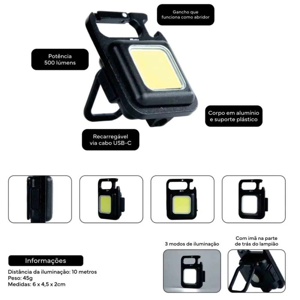 Lampião NTK KeyLed 500 lúmens Portátil LED Camping Recarregável