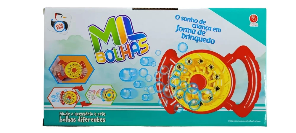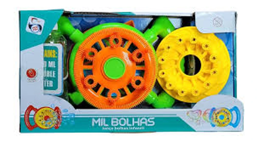 O Lançador de bolhas de sabão Mil Bolhas é um brinquedo que proporciona diversão e maravilhamento para as crianças, garantindo entretenimento para toda a família. Produz grande quantidade de bolhas de sabão com facilidade. O brinquedo é leve o que deixa a brincadeira confortável e acessível para os pequenos. Além disso, possui acessórios que podem ser trocados para formar diferentes bolhas de sabão. É muito versátil, pois pode ser usado em diversas vivências e situações diferentes, criando momentos especiais e cheios de alegria. Acompanha 150ml de água com sabão para utilizar no brinquedo e começar a brincadeira! Recomendado para crianças a partir de 3 anos. Usar quatro pilhas tipo "AA", não inclusas. Não recomendável para crianças menores de 03 (três) anos por conter partes pequenas que podem ser engolidas ou aspiradas.