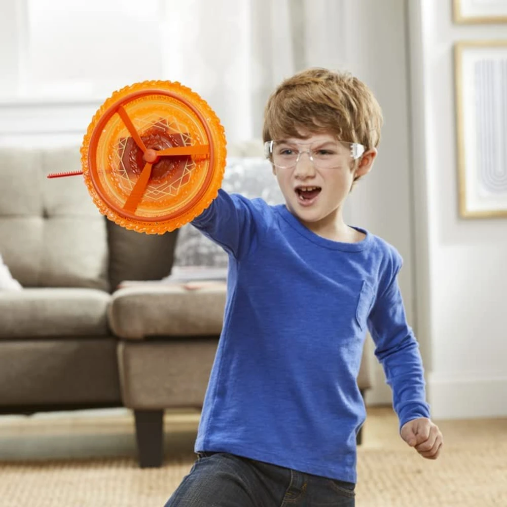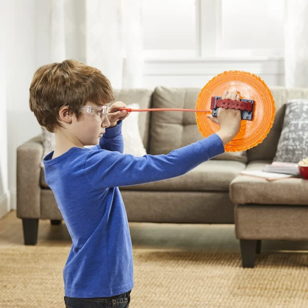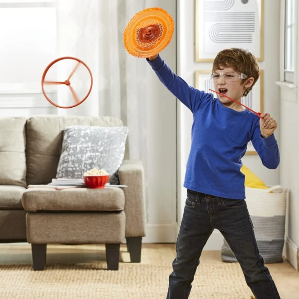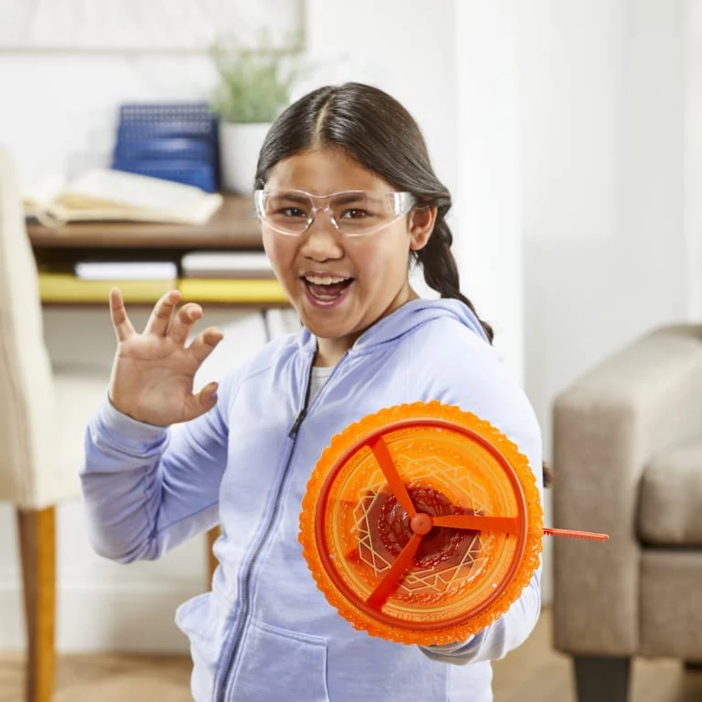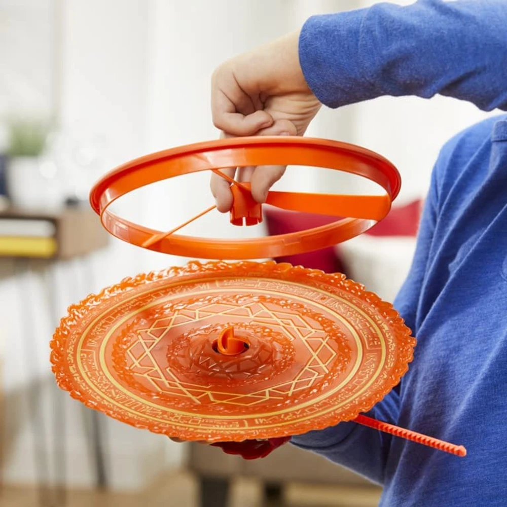 DEFENDA A DIMENSÃO: Crianças a partir dos 6 anos podem carregar um projétil de feitiço de turbina no lançador e, em seguida, puxar a corda para lançar, imaginando salvar o universo