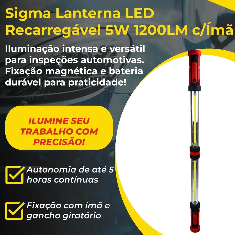 Sigma Tool Lanterna LED Recarregável Automotiva – Iluminação Potente e Portátil para Capô e Interior