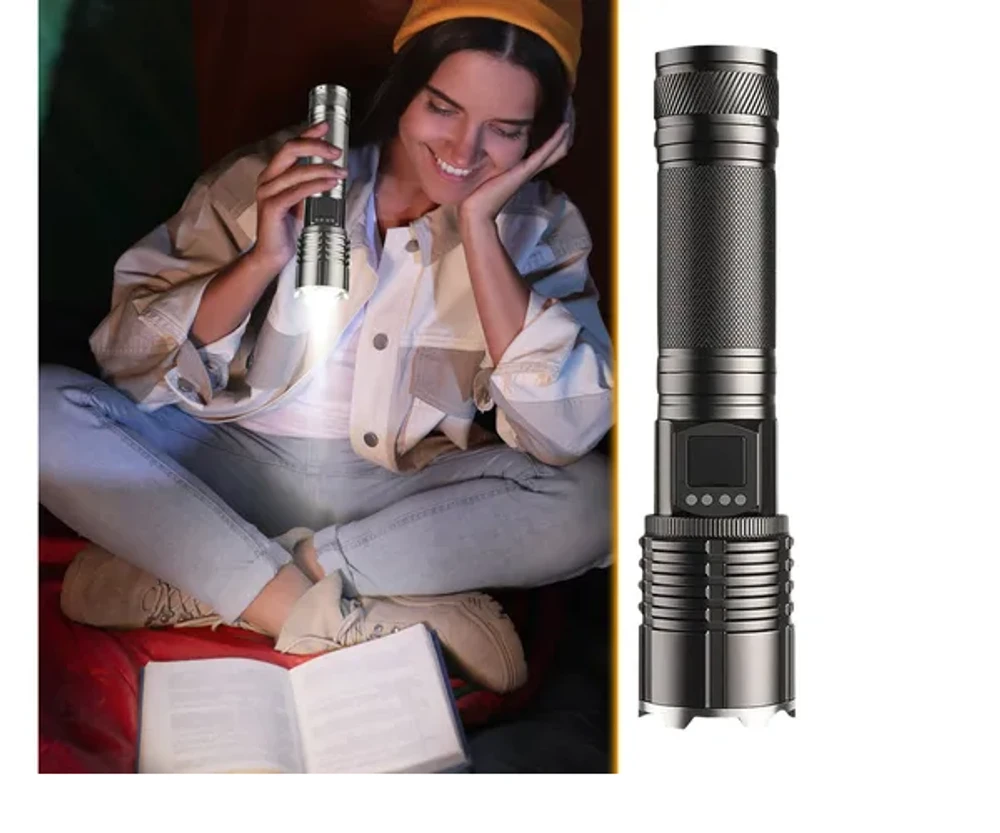 Lanternas Lanterna LED brilhante recarregável de alto lúmen Lanterna de luz forte tipo C de carregamento com display digital externo Lanterna LED fluorescente
