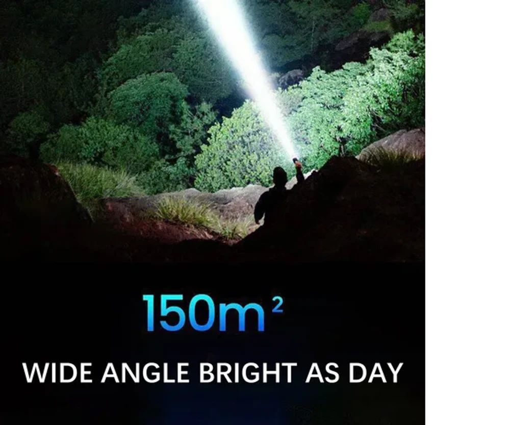 Equipada com uma lanterna alta, este é um amplo feixe de luz que pode iluminar claramente coisas de até 3280 pés, iluminando sem esforço toda a sala ou quintal.