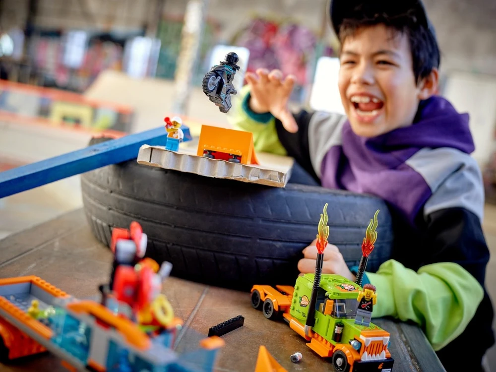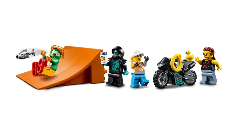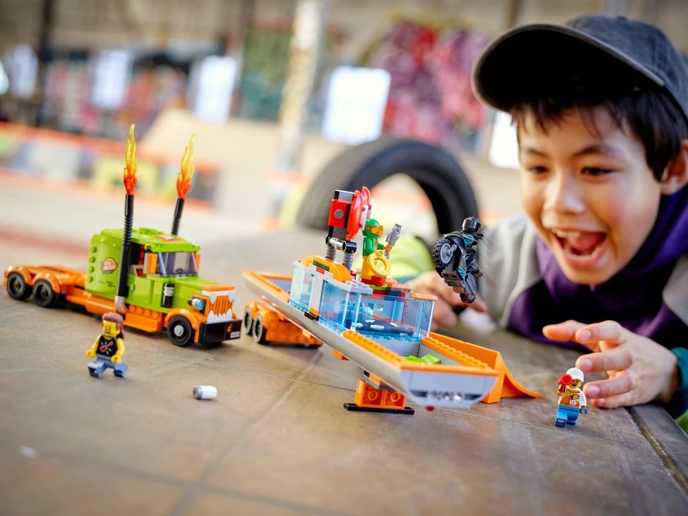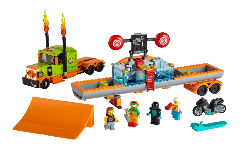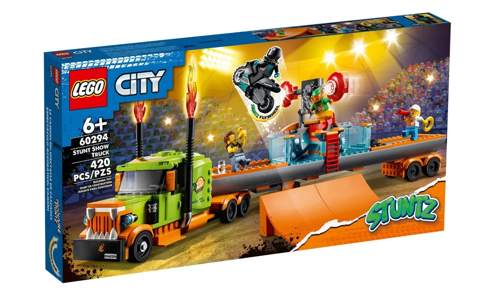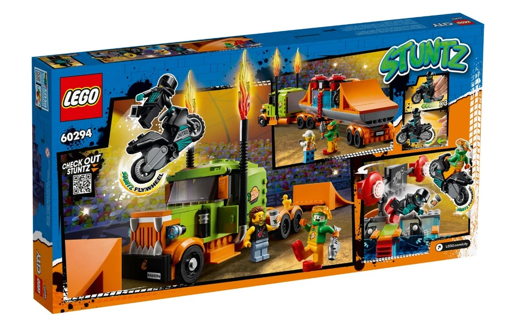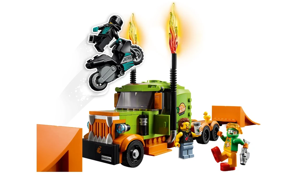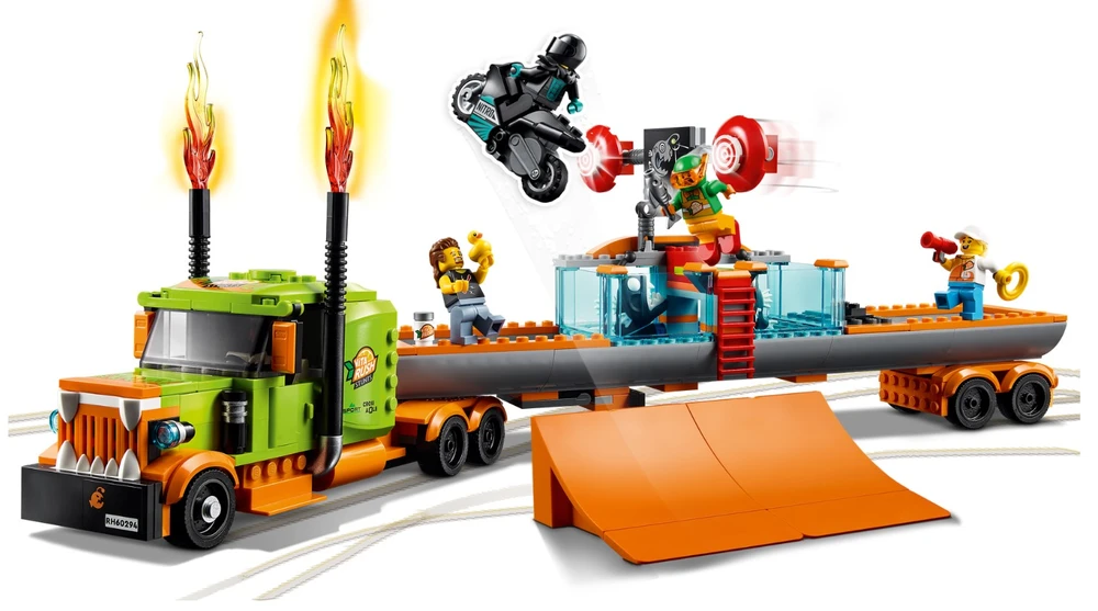 Este conjunto de alta qualidade LEGO® City Espetáculo de Acrobacias de Caminhão (60294) vem repleto de funcionalidades para brincadeira com muita ação, incluindo uma motocicleta de acrobacias propulsada por roda de inércia para realizar saltos espetaculares. As crianças ativam a motocicleta e lançam-na da rampa para acertar o alvo e fazer cair o palhaço no tanque de água. E com 4 mini figuras, incluindo 3 personagens da série de TV LEGO City Adventures, há tudo que as crianças precisam para começar a diversão! Este conjunto de brinquedo traz um guia de construção impresso e Instructions PLUS ? incluídas no aplicativo grátis de Instruções de Construção LEGO, com zoom e ferramentas de visualização e rotação que dão vida ao processo de construção. Os conjuntos LEGO City Stuntz colocam as crianças no centro da ação com motocicletas propulsadas por roda de inércia, veículos incríveis, estruturas realistas e personagens divertidos que inspiram brincadeira imaginativa baseada em eventos da vida real. Combine os conjuntos do universo LEGO City Stuntz para ainda mais entusiasmo!