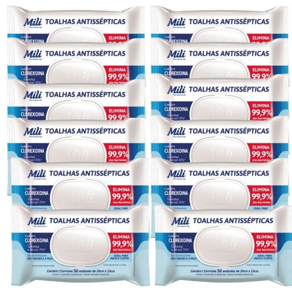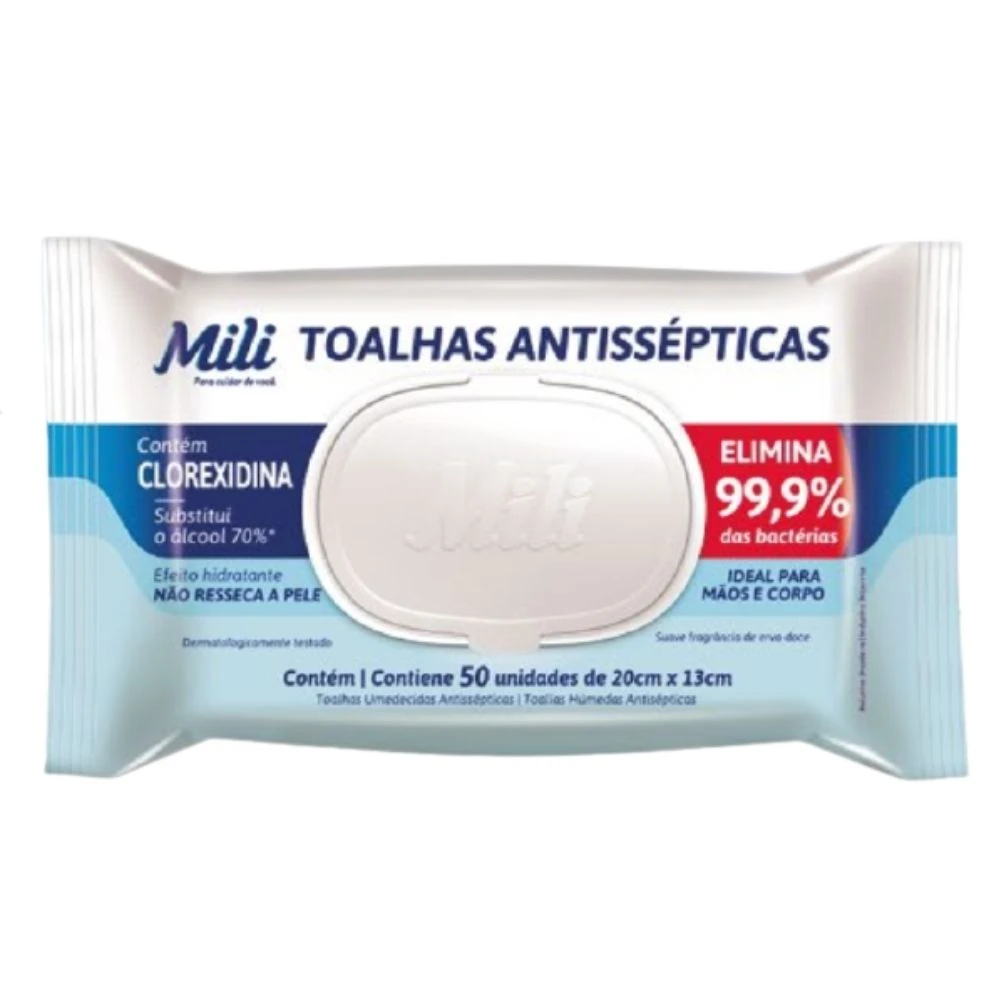 Toalha Umedecida Mili Antisséptica 50 unidades