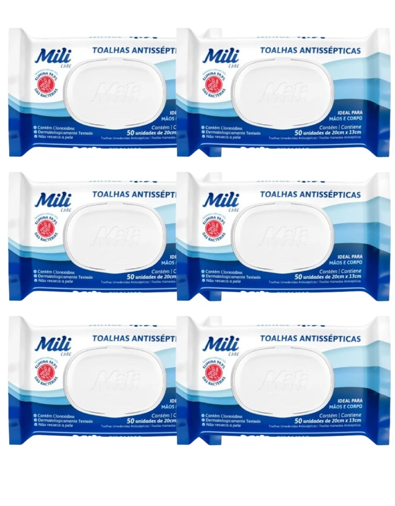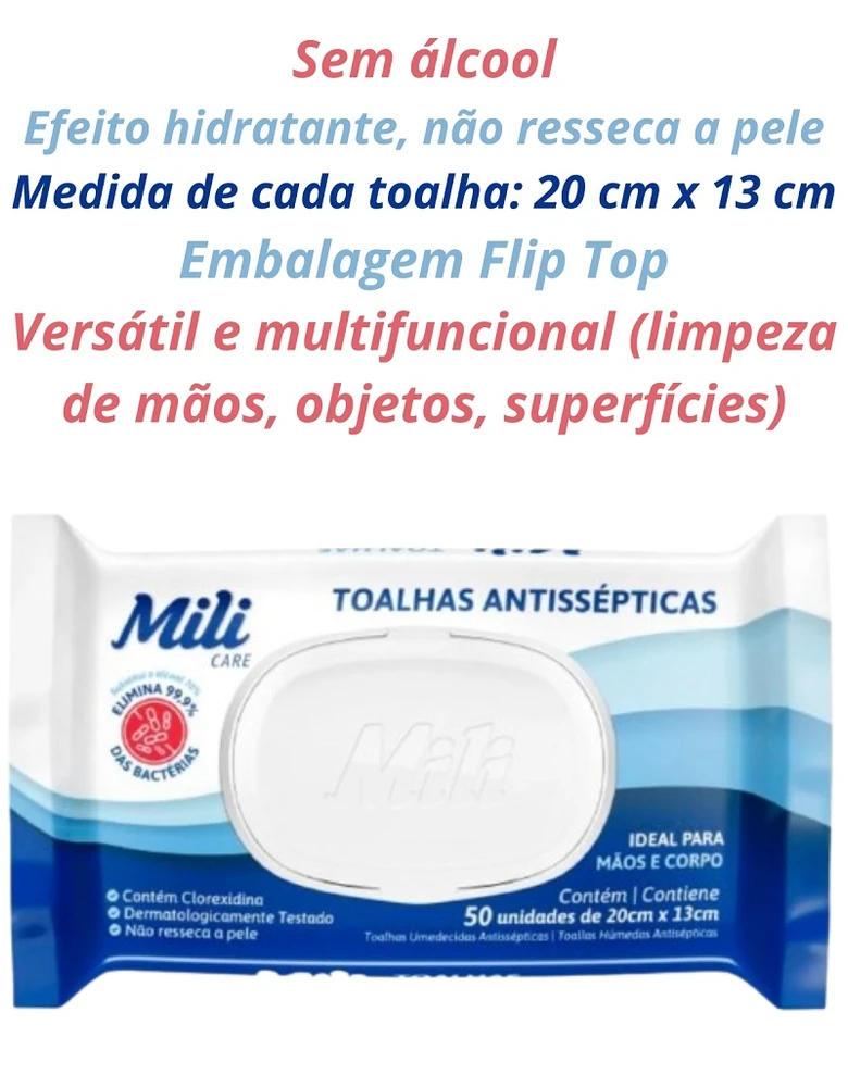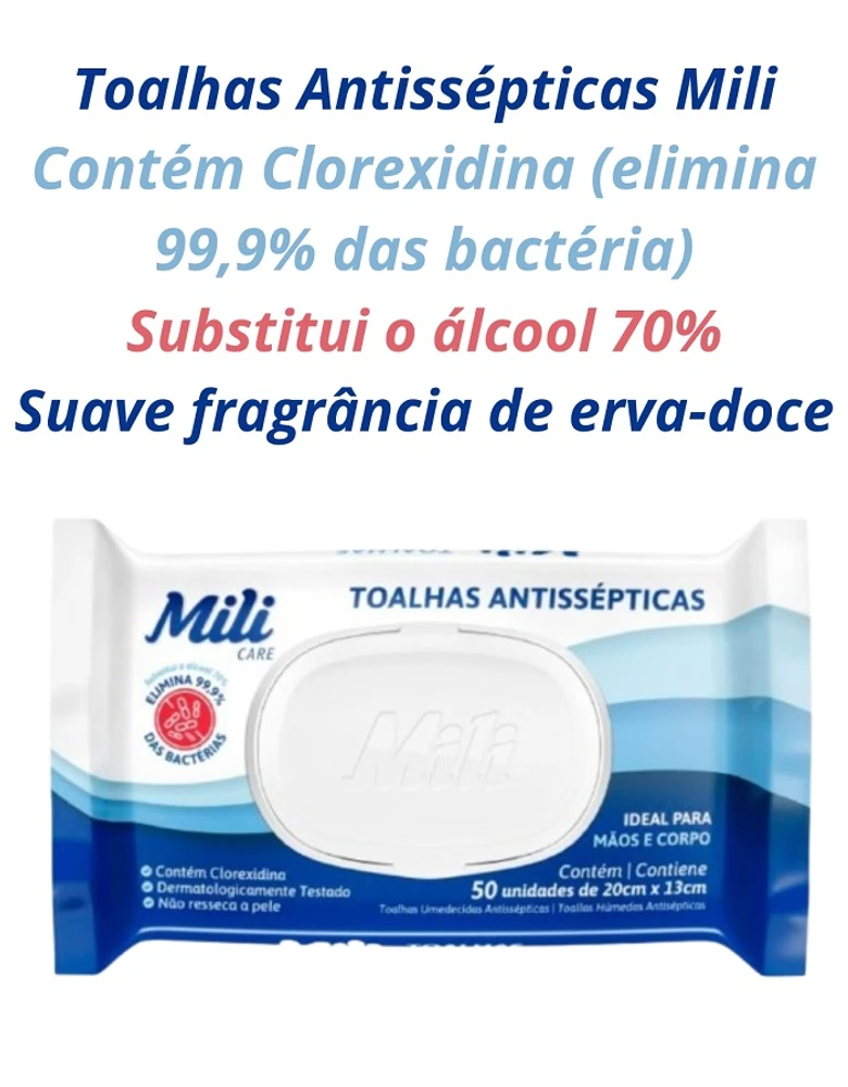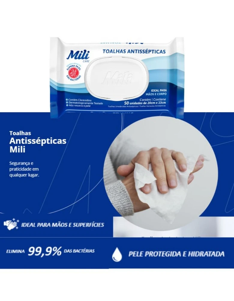 Toalha Umedecida Mili Antisséptica 50 unidades