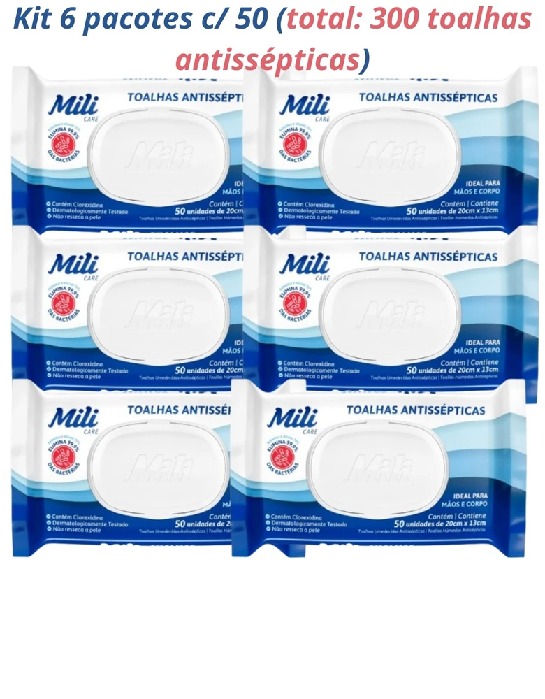 Embalagem com 6 pacotes de 50 unidades (Total: 300 toalhas)