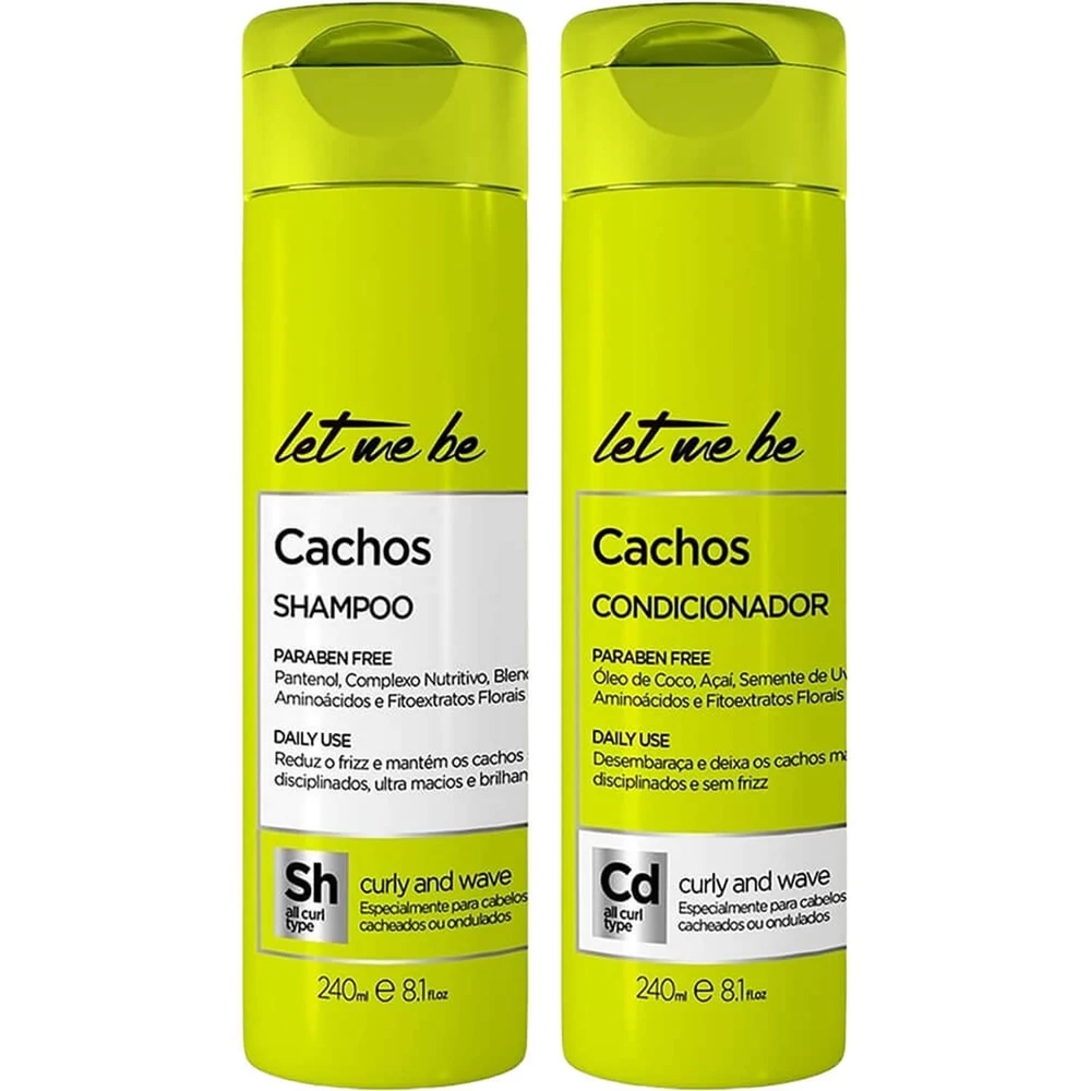 A linha Cachos Let Me Be foi desenvolvida para cabelos cacheados ou ondulados a fim de proporcionar os cachos mais saudáveis, maleáveis e soltos. Elaborada com Óleos de Coco, Açaí e Semente de Uva, Manteigas de Tucumã, Karité e Cupuaçu, Blend de Aminoácidos e Fito Extratos Florais, possui propriedades reparadores, umectantes e nutritivas, atribuindo leveza, movimento, brilho e maciez aos cachos.