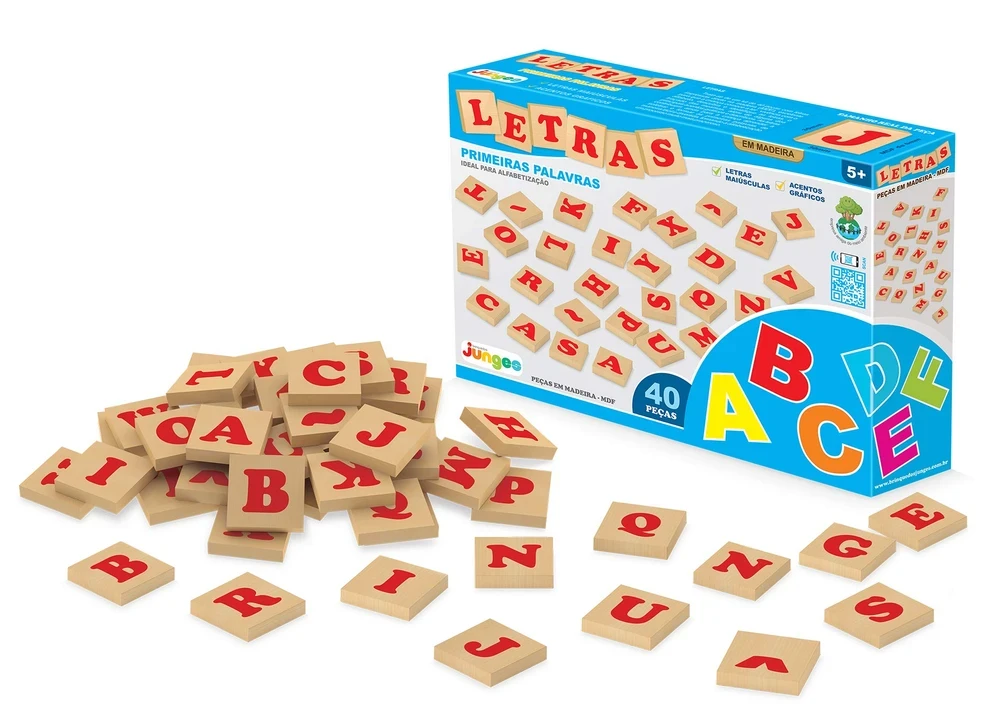 O Jogo Letras 40 Peças da Junges é uma ferramenta educativa que alia aprendizado e diversão. Produzido em MDF de reflorestamento com impressão em serigrafia, apresenta letras maiúsculas e acentos gráficos do alfabeto português, permitindo que a criança explore a formação de palavras de forma lúdica e criativa. Com peças resistentes e bem acabadas, o jogo estimula a alfabetização, a coordenação motora e o raciocínio, tornando o aprendizado mais interativo e envolvente.