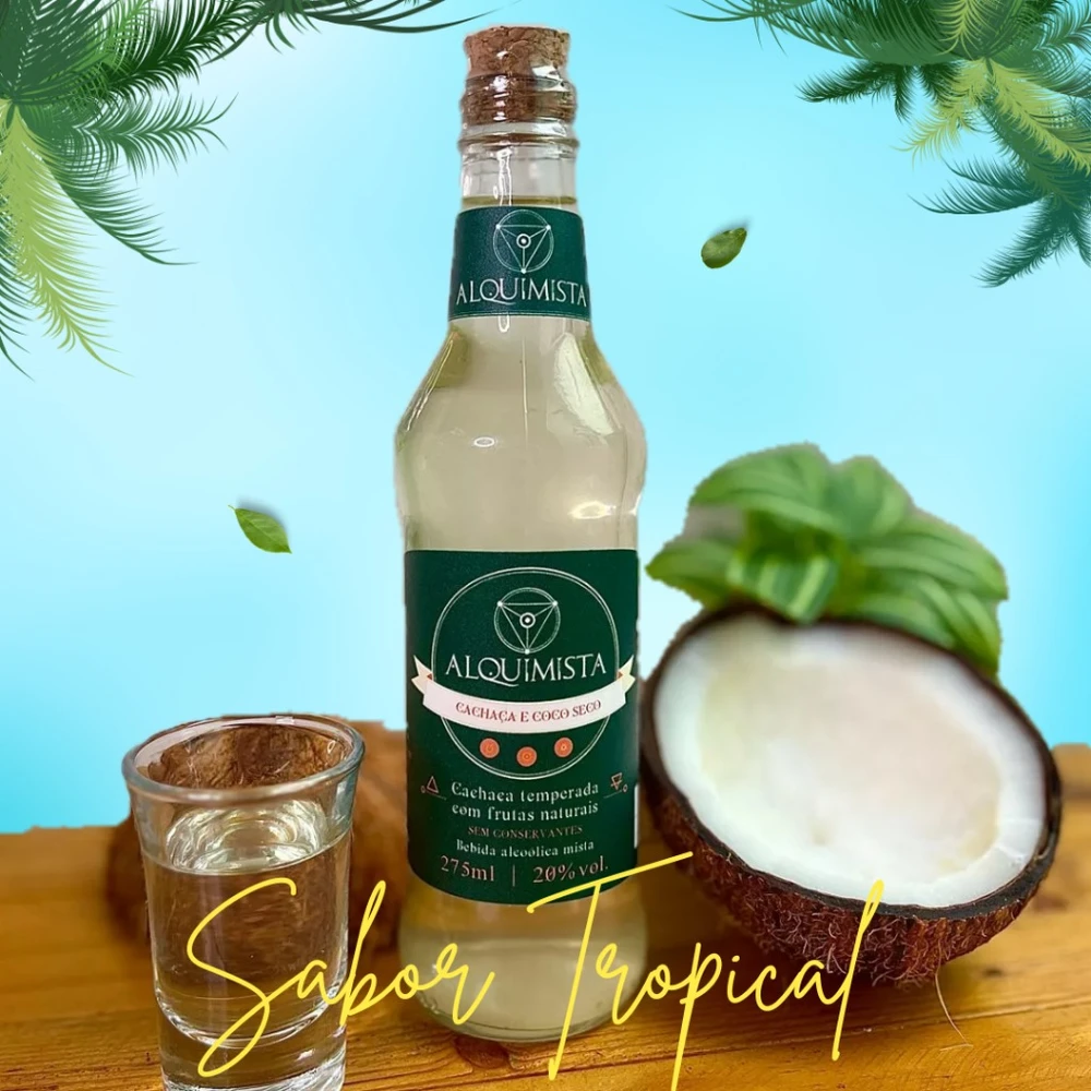 Um clássico com alma brasileira. Nossa cachaça artesanal de coco seco é levemente adocicada, com um sabor tropical marcante e textura suave. A infusão repousa por até 60 dias na cachaça de alambique, absorvendo lentamente a essência natural do coco, sem exageros — na medida perfeita.