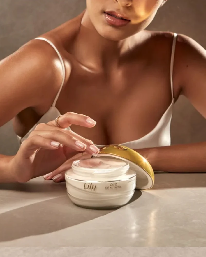 01 Lily Creme Acetinado Hidratante Corporal, 250g;