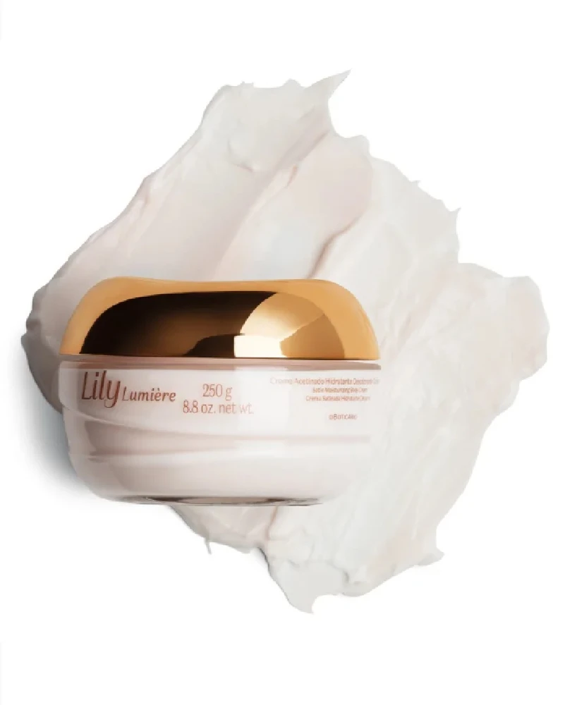 O Creme Acetinado Hidratante Desodorante Corporal Lily Lumière é a combinação ideal de perfumação prolongada com a fragrância marcante e intensa de Lily Lumière.