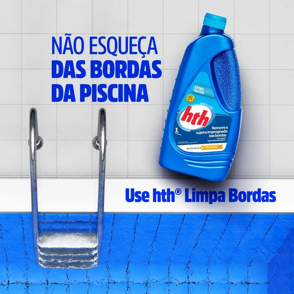 O hth® Limpa Bordas contém tensoativo biodegradável e possui uma ação detergente que é própria para a borda de piscina de fibra, vinil ou azulejo. Sua fórmula remove a sujeira impregnada sem fazer espuma e sem interferir na purificação da água.