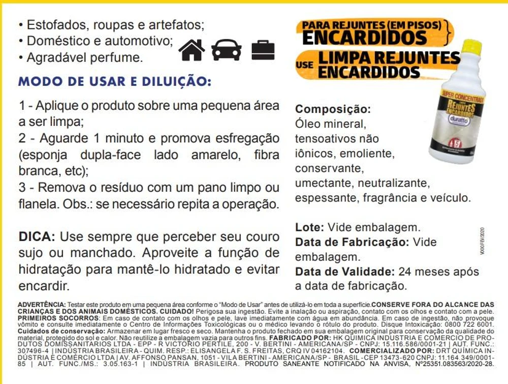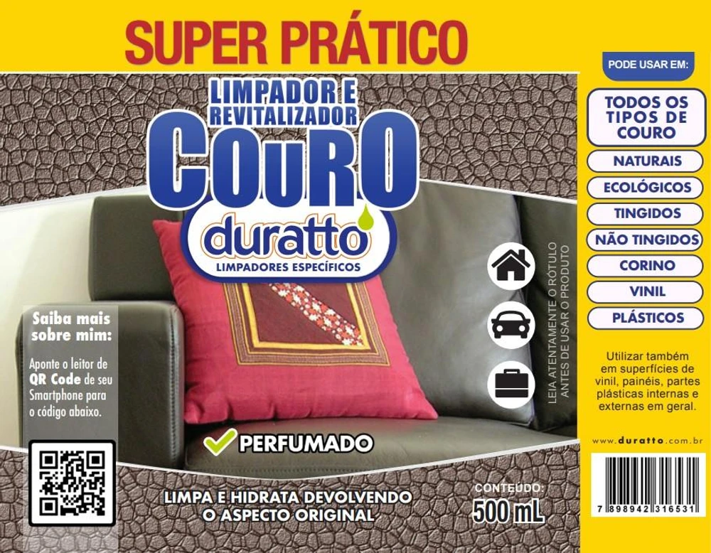 Usar em: qualquer tipo de couro (naturais e ecológicos, tingidos ou não), corino, vinil, plásticos, etc. Utilizar também em superfícies de vinil, painéis, partes plásticas internas e externas em modo geral.