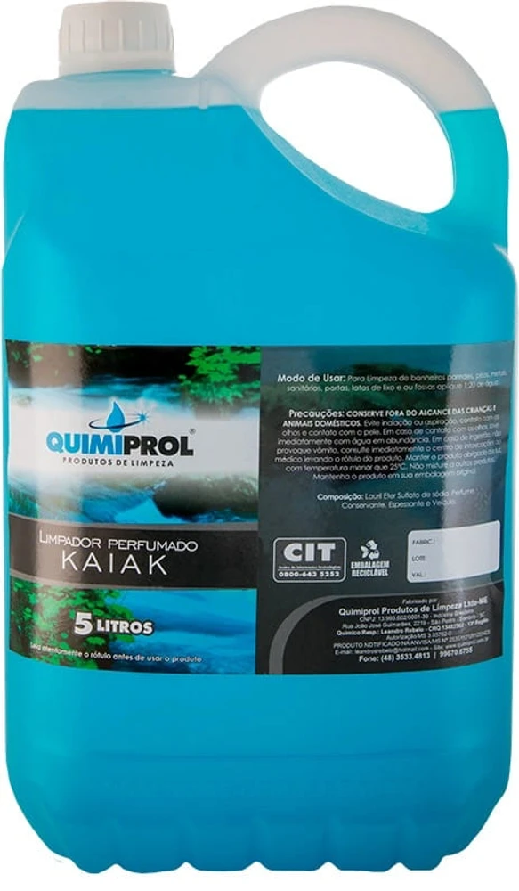 Descubra o poder do Limpador Perfumado Kaiak 5L da Quimiprol, ideal para limpeza eficaz e aromatização prolongada de banheiros, pisos, azulejos e superfícies em geral. Sua fórmula concentrada garante remoção de sujeiras difíceis com ação rápida, deixando um frescor duradouro inspirado na natureza, que transforma o ambiente em um espaço agradável e convidativo.