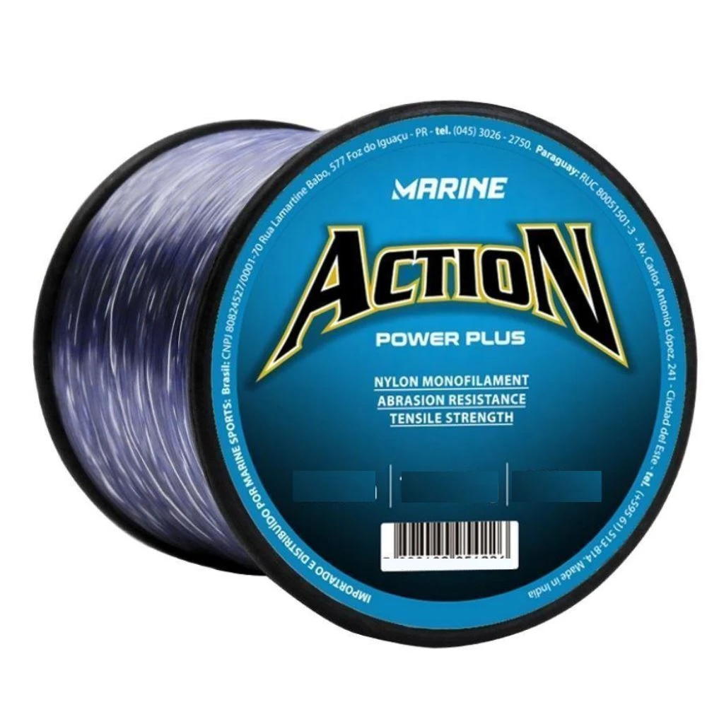 Linha Marine Sports Action Power Plus 0,70mm 70lb 480m e uma linha monofilamento de nylon de altíssima qualidade, resistente a tensão e à abrasão. Possui cor cinza que faz com que ela fique transparente sob a água. Você vai conseguir excelentes arremessos e sem ocorrer as terríveis cabeleiras que são tão indesejadas.