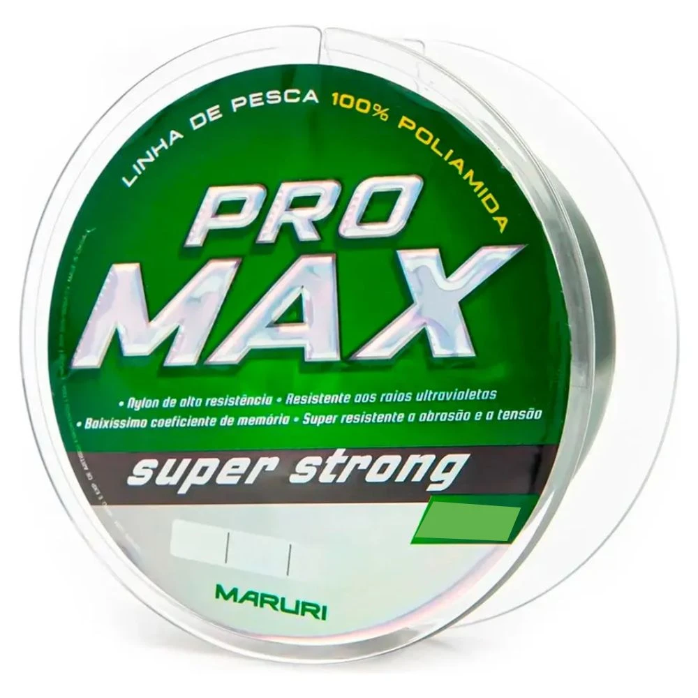 A linha Monofilamento Pro Max Super Strong é indicada para peixes de água doce e salgada, em situações onde a linha é exigida ao máximo, mantendo suas características de resistência e flexibilidade. Sua resistência a abrasão é muito superior à dos monofilamentos convencionais. A linha Pro Max Super Strong possui superfície lisa e macia, com ótima resistência ao atrito e desgaste.