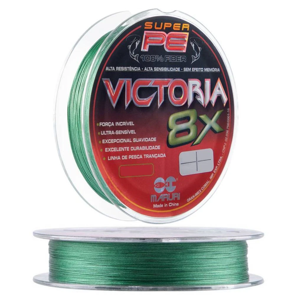 Linha de Pesca Multifilamento Maruri Victoria 8X vem em carretel com 150 metros é de última geração com extrema sensibilidade e resistência a tração. A linha multifilamento Maruri Victoria 8X tem a melhor combinação entre alta tecnologia e conhecimento em pesca esportiva. A linha Victoria 8X é construída com fibras trançadas 100% PE, deixando-a com um acabamento mais arredondado. A linha Maruri Victoria 8X tem baixa absorção de água, desliza facilmente pelos passadores proporcionando arremessos mais longos e precisos. Tecnologia avançada de revestimento, resistente à abrasão, mais forte e resistente a água salgada resultando assim maior durabilidade.