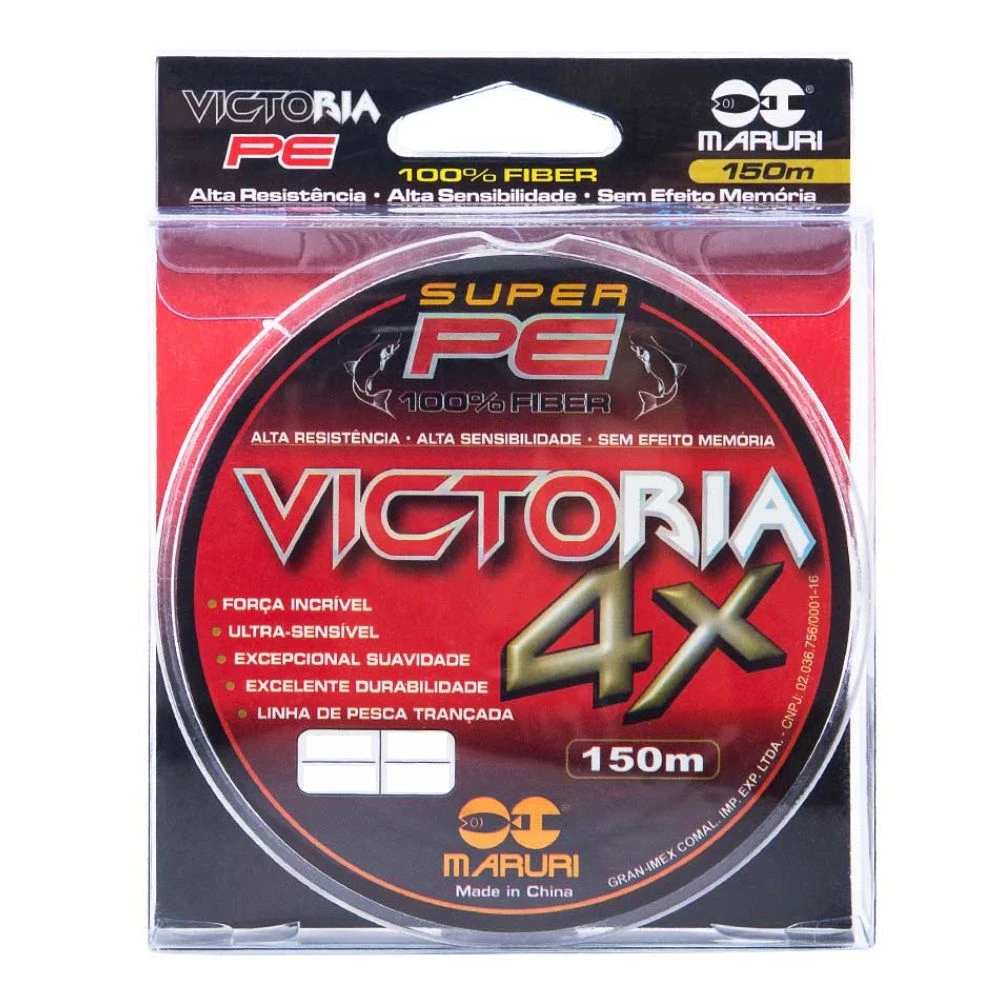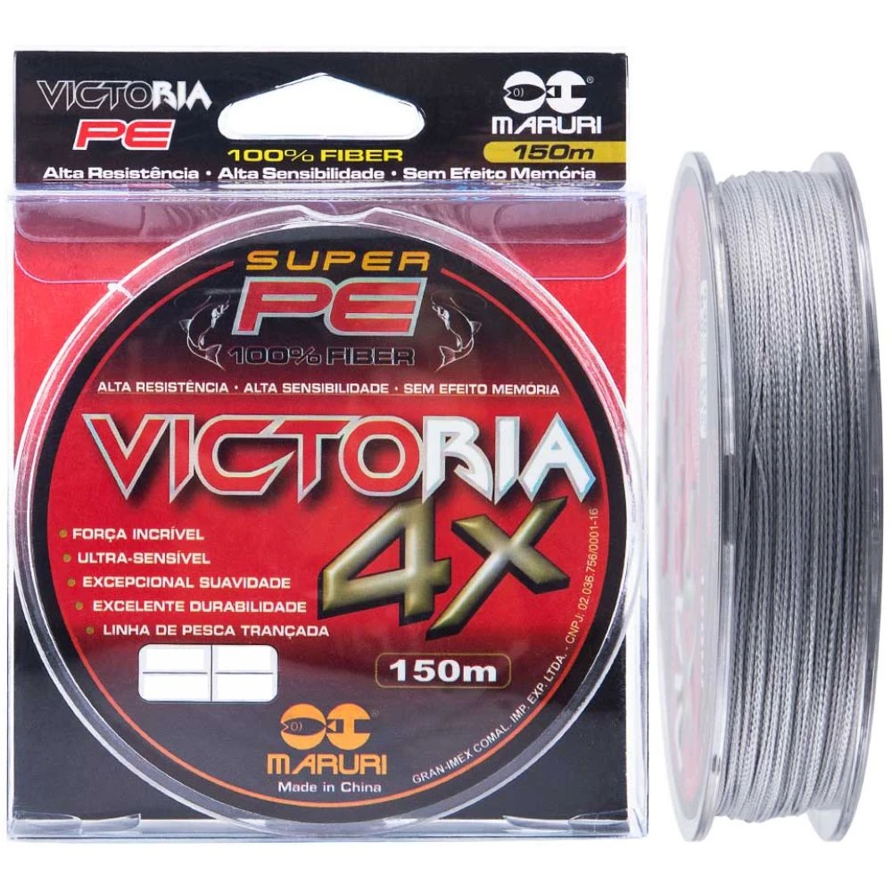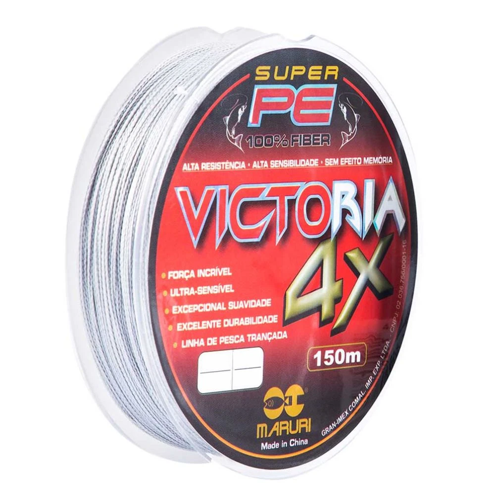Linha Victoria Super PE tem a melhor combinação entre alta tecnologia e conhecimento em pesca esportiva. A linha Victoria 4X é construída com fibras trançadas 100% PE, deixando assim com um acabamento mais arredondado.