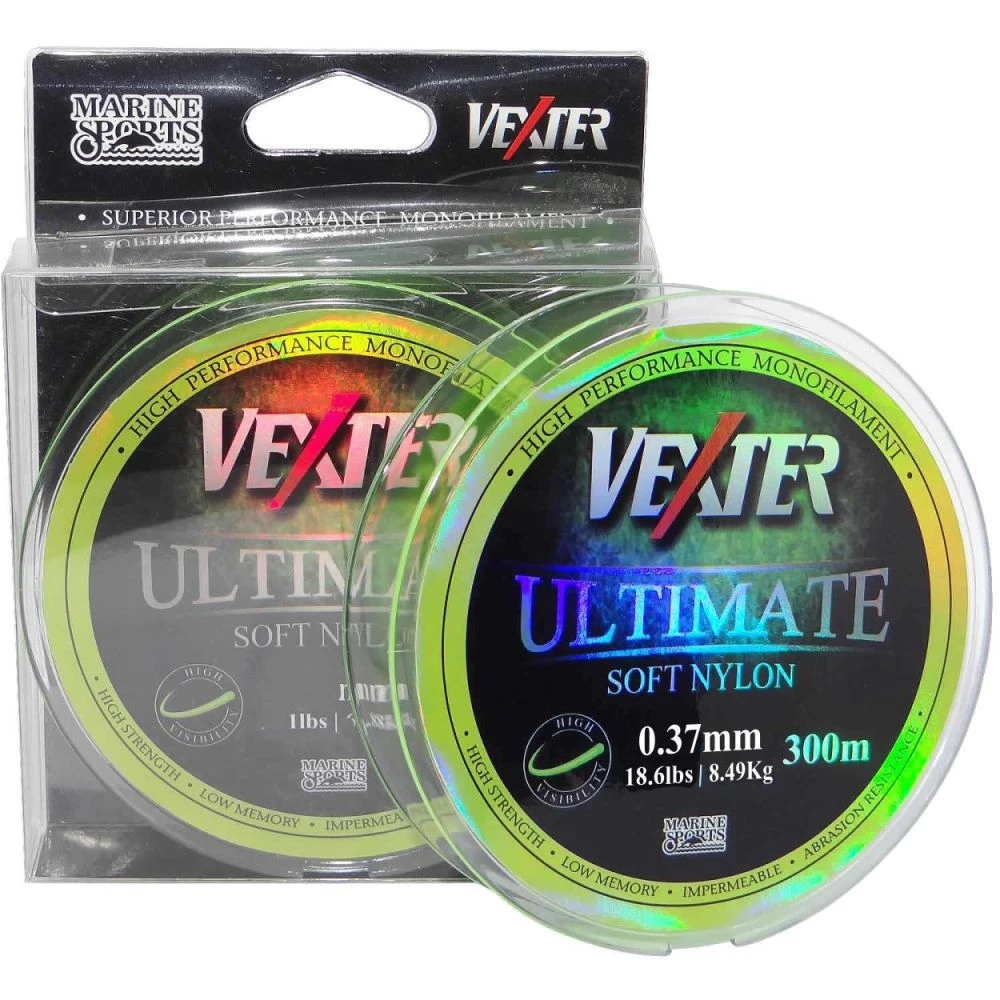 A linha Monofilamento Soft Marine Sports Vexter Ultimate e de altíssima resistência à abrasão, tem proteção Ultravioleta. A linha Vexter Ultimate possui ainda como característica baixa memória, alta resistência a nós, impermeável e alta visibilidade.
