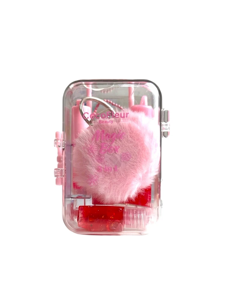 O Magic Box 3 in 1 da Coco Fleur Beauty é o epítome do charme e da funcionalidade em um único acessório de beleza. Este kit encantador vem em uma caixinha transparente e compacta, contendo um trio essencial para o cuidado e brilho dos lábios. O destaque fica para o detalhe em pelúcia rosa super macio dentro da embalagem, que transforma o produto em um item de desejo imediato. Ideal para quem busca lábios hidratados com um toque de diversão, ele é perfeito para levar na bolsa, usar como um mimo especial ou presentear alguém que ama itens de beleza criativos.