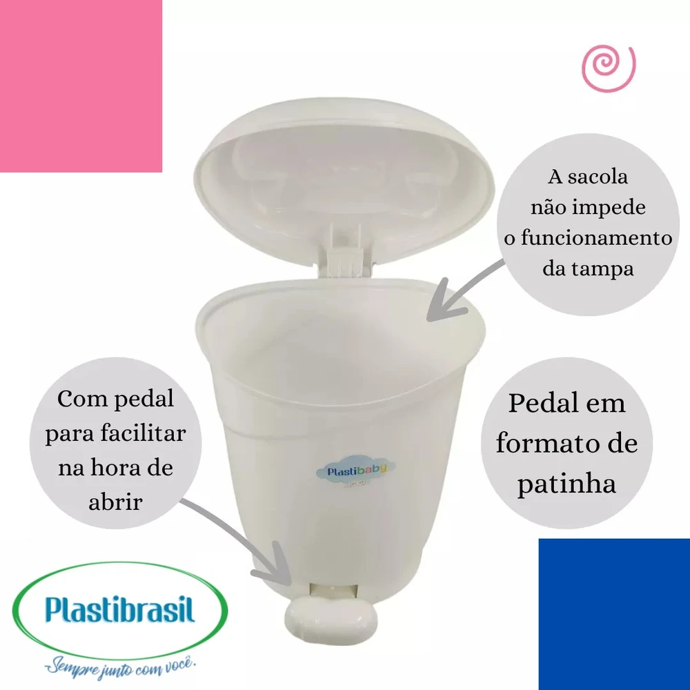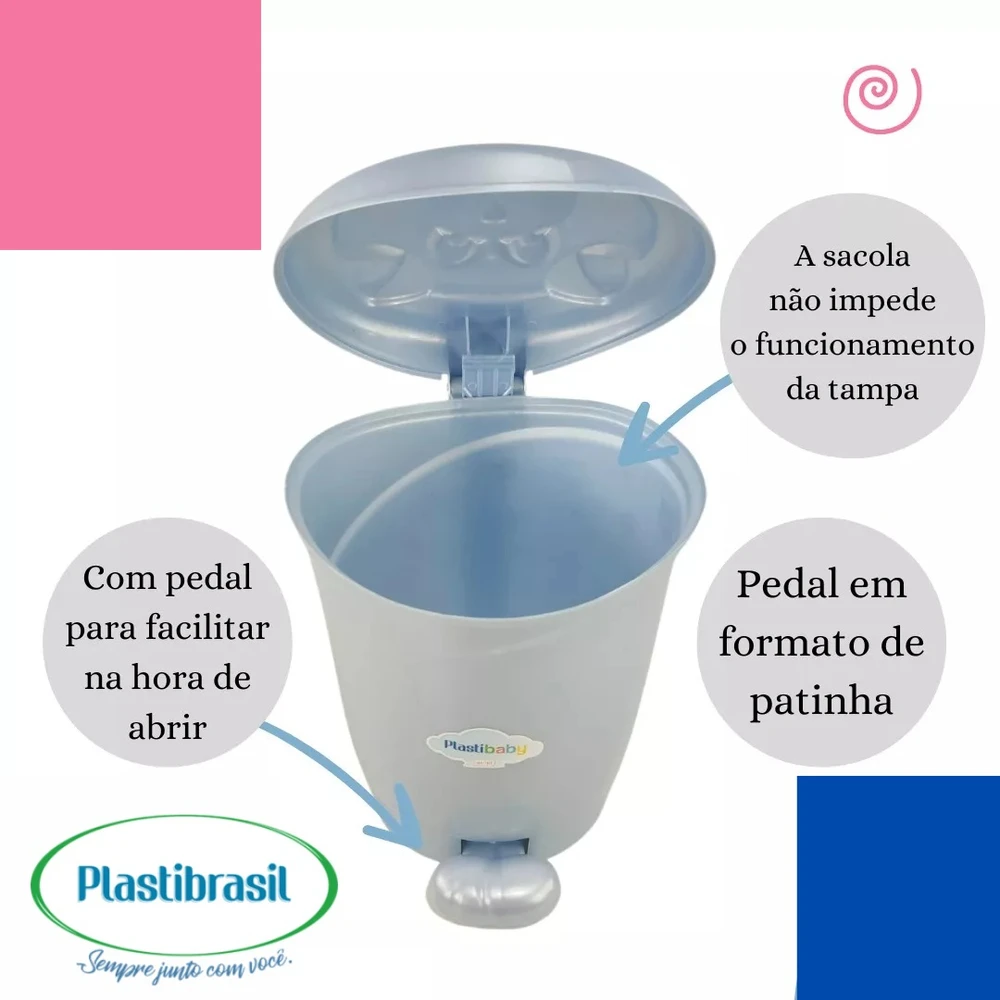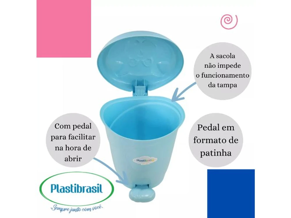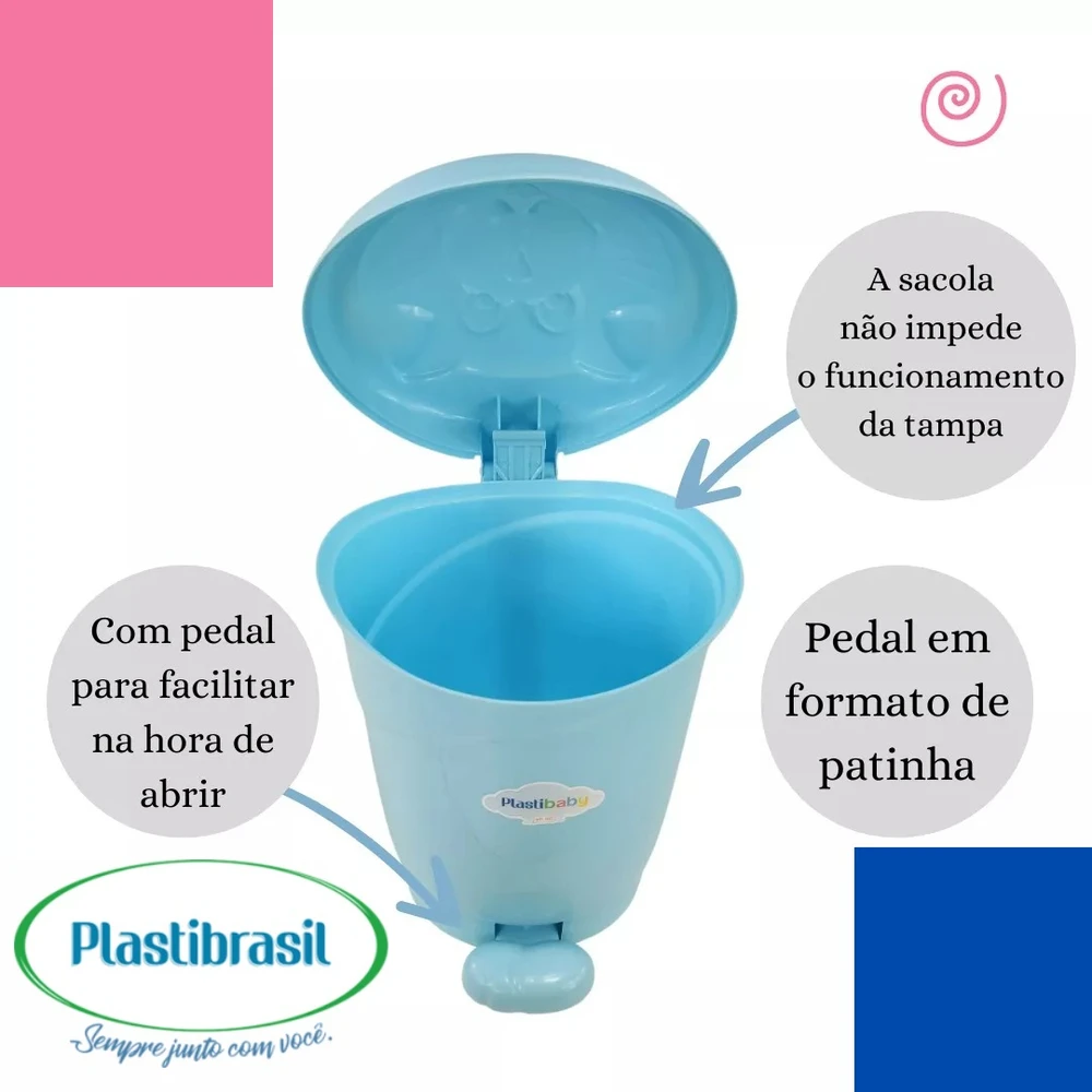 A Lixeira Gatinho com Pedal de 8 litros da Plastibrasil é a escolha perfeita para o quarto do seu bebê, unindo funcionalidade e um design encantador. Com um pedal no formato de patinha, proporciona uma abertura prática e higiênica, ideal para o uso diário. Este modelo é projetado para reutilizar sacolas de mercado, garantindo que você possa manter a lixeira sempre limpa e organizada, sem comprometer o funcionamento da tampa retrátil. Com dimensões de 37 cm de altura por 24 cm de largura, é compacta e se adapta facilmente a diferentes ambientes, como escritório, bancada, cozinha, banheiro e quarto. Feita de plástico, a lixeira é nova e resistente, oferecendo durabilidade e praticidade. Seu design infantil, na cor azul, traz um toque lúdico ao ambiente, tornando a coleta de resíduos uma tarefa mais divertida para os pequenos.