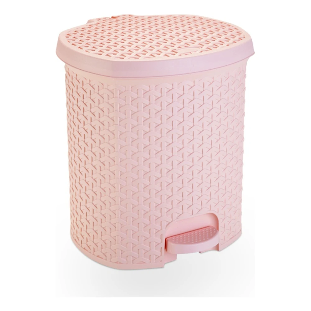 A Lixeira 15 Litros com Pedal, é de plástico, trabalhada em rattan por fora e lisa por dentro, fácil de lavar e higienizar.