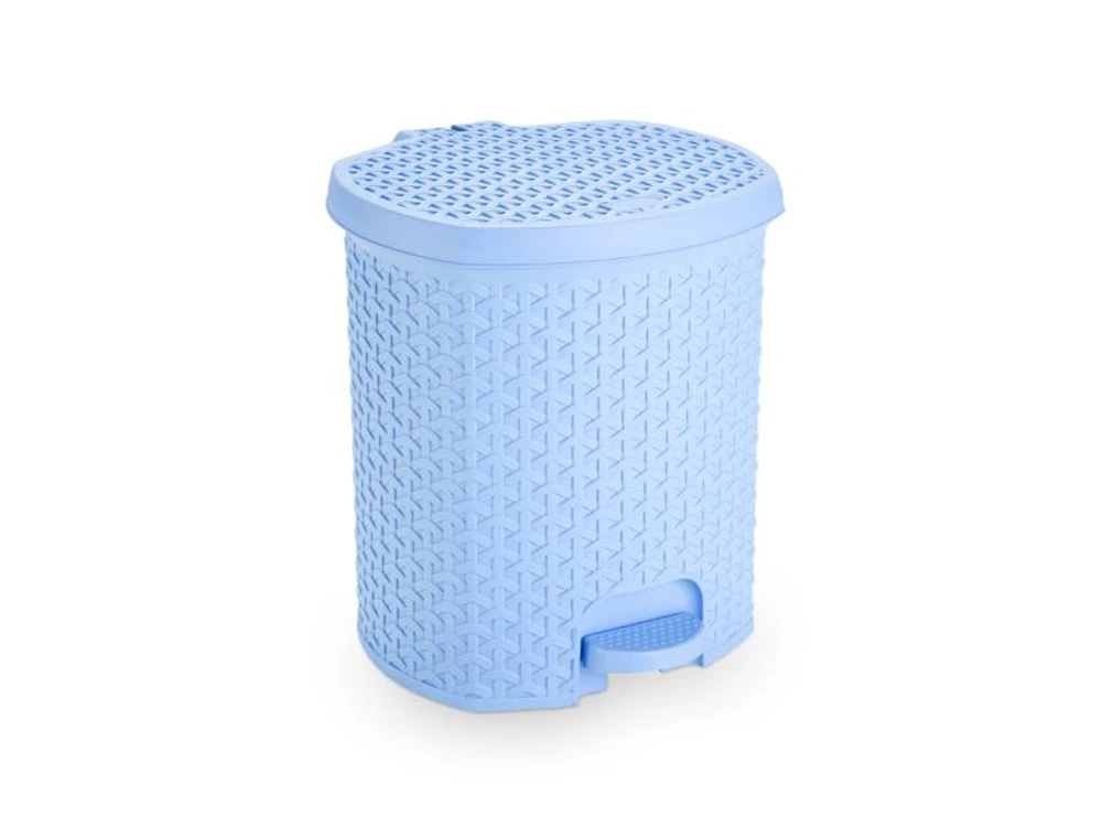 A Lixeira 06 Litros com Pedal é de plástico, trabalhada em rattan por fora e lisa por dentro, fácil de lavar e higienizar.
