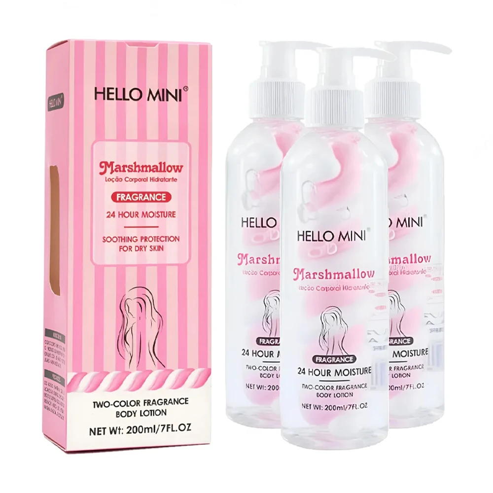 Loção Corporal Hidratante Marshmallow Hello Mini: hidratação intensa e fragrância envolvente para sua pele. Com fórmula exclusiva que proporciona até 24 horas de hidratação, essa loção combina proteção e conforto, ideal para peles secas que precisam de cuidado delicado e eficaz. Sua textura leve é rapidamente absorvida, deixando a pele macia, suave e com toque aveludado sem sensação pegajosa.