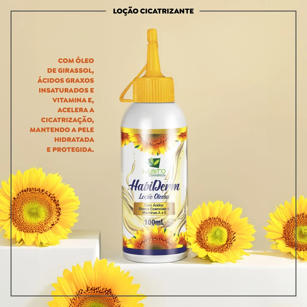 Descubra a eficácia da Loção HabiDerm, enriquecida com óleo de girassol e formulada para acelerar a cicatrização de cicatrizes, feridas e queimaduras. Sua composição com ácidos graxos essenciais e vitaminas A e E promove uma regeneração profunda da pele, reduzindo marcas e desconfortos. Ideal para quem busca um tratamento natural e potente para reparação cutânea, HabiDerm oferece rápida absorção e ação prolongada, garantindo hidratação e proteção intensas.