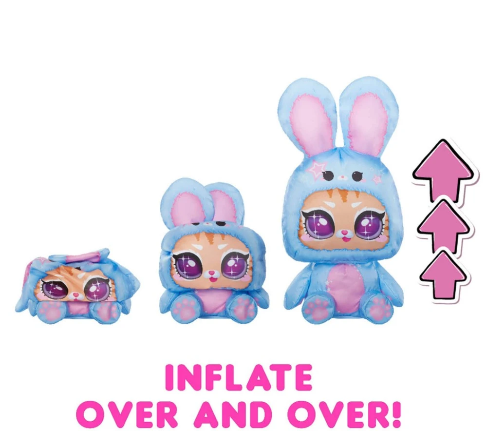 A LOL Surprise - Tweens Costume Surprise Aya Cherry da MGA prepare-se para desembrulhar a derradeira surpresa e mergulhar numa aventura sem igual, que inclui a boneca Aya Cherry, a preferida dos fãs, com um visual moderno e o seu adorável disfarce de coelhinha insuflável. Esta revelação ultra-divertida e experimental está repleta de camadas de surpresas, perfeitas para as crianças brincarem com a imaginação e contarem histórias. Descubra o que está no interior rasgando primeiro o fecho de correr na parte inferior da embalagem e levantando a capa cor-de-rosa exterior para revelar um papel de embrulho misterioso, dando início à primeira fase do processo de insuflação! Observe como o papel cresce e fica mais cheio e, quando estiver completamente insuflado, rasgue o papel para descobrir a sua encantadora fantasia de coelhinho azul! Mas espera, a surpresa não fica por aqui! Desaperta o velcro da parte de trás da cabeça do coelhinho para revelares a tua linda boneca Tweens Aya Cherry escondida no interior! E a diversão não acaba aqui - basta ligar e desligar o interrutor na parte inferior da fantasia para repetir a diversão de encher vezes sem conta!