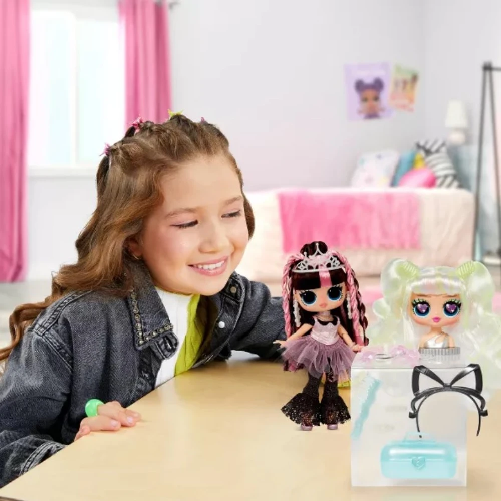 Apresentando a novíssima boneca LOL Surprise Tweens Surprise Swap? Fashion Doll Bronze-2-Blonde Billie, que vem com 2 visuais exclusivos e uma cabeça de estilo trocável para a melhor experiência de personalização e brincadeira de cabelo! Como uma entusiasta de cat cafés, Billie está aproveitando ao máximo sua turnê mundial visitando vários cafés onde ela adora conversar com suas melhores amigas enquanto toma seus chás favoritos. Desembrulhe mais de 20 surpresas, incluindo uma cabeça de estilo, modas fabulosas, sapatos, um caboodle, uma tiara, uma pulseira de pérolas, acessórios de estilo de cabelo, uma escova de cabelo, um suporte de boneca e muito mais! Mude o visual de Billie em um instante trocando seu penteado marrom e rosa pela cabeça de estilo com mechas loiras que podem ser facilmente fixadas no corpo da boneca. Em seguida, dê a ela uma rápida troca de roupa e troque seus acessórios, incluindo seu capacete, acessórios de cabelo e muito mais! Depois de terminar de estilizar sua boneca, repita o recurso de troca de cabeça e as trocas de acessórios várias vezes para criar infinitos looks de mixagem e combinação! Combine as bonecas Tweens Surprise Swap? com as atraentes novas Surprise Swap Styling Heads, cada uma com lindos cabelos e acessórios para cabelo para ainda mais personalização! Cada boneca tem características impressionantes, cabelos lindos, seu próprio estilo glamoroso e vem articulada para inúmeras oportunidades de poses. Os acessórios podem ser armazenados ordenadamente no adorável caboodle e a cabeça de estilo adicional pode sempre ser colocada de volta no suporte de cabeça quando não estiver em uso para facilitar a limpeza. Colecione todas as 4 bonecas da moda LOL Surprise Tweens Surprise Swap?: Braids-2-Waves Winnie, Bronze-2-Blonde Billie, Buns-2-Braids Bailey e Curls-2-Crimps Cora.