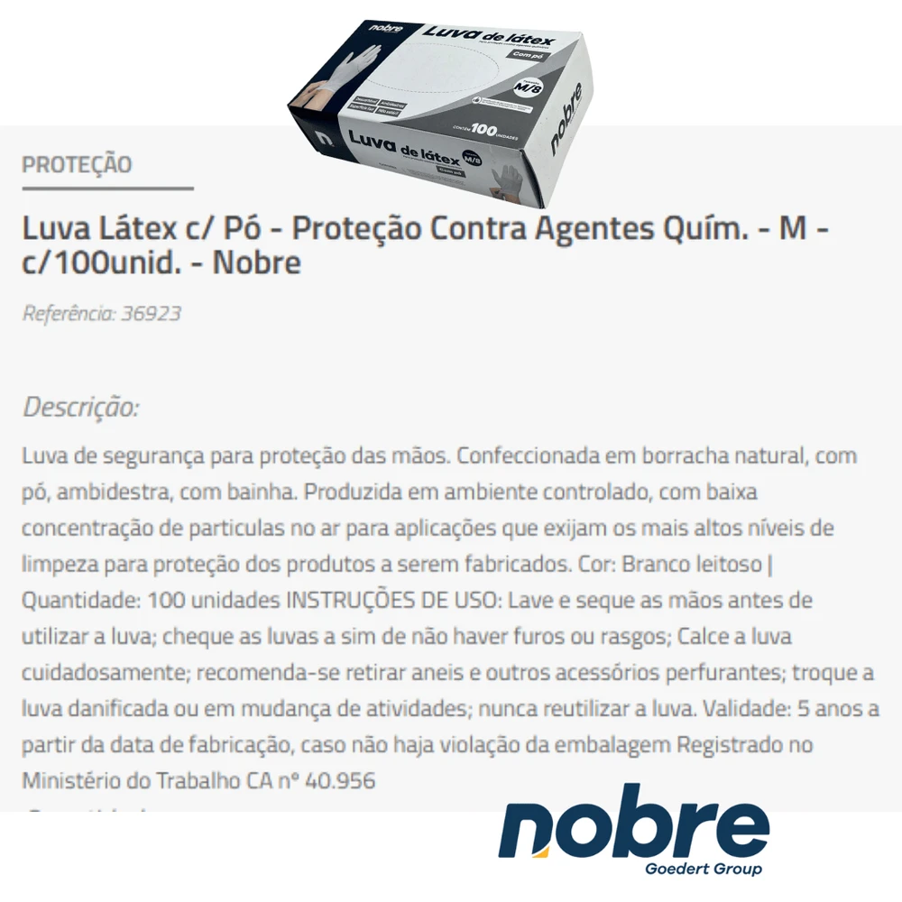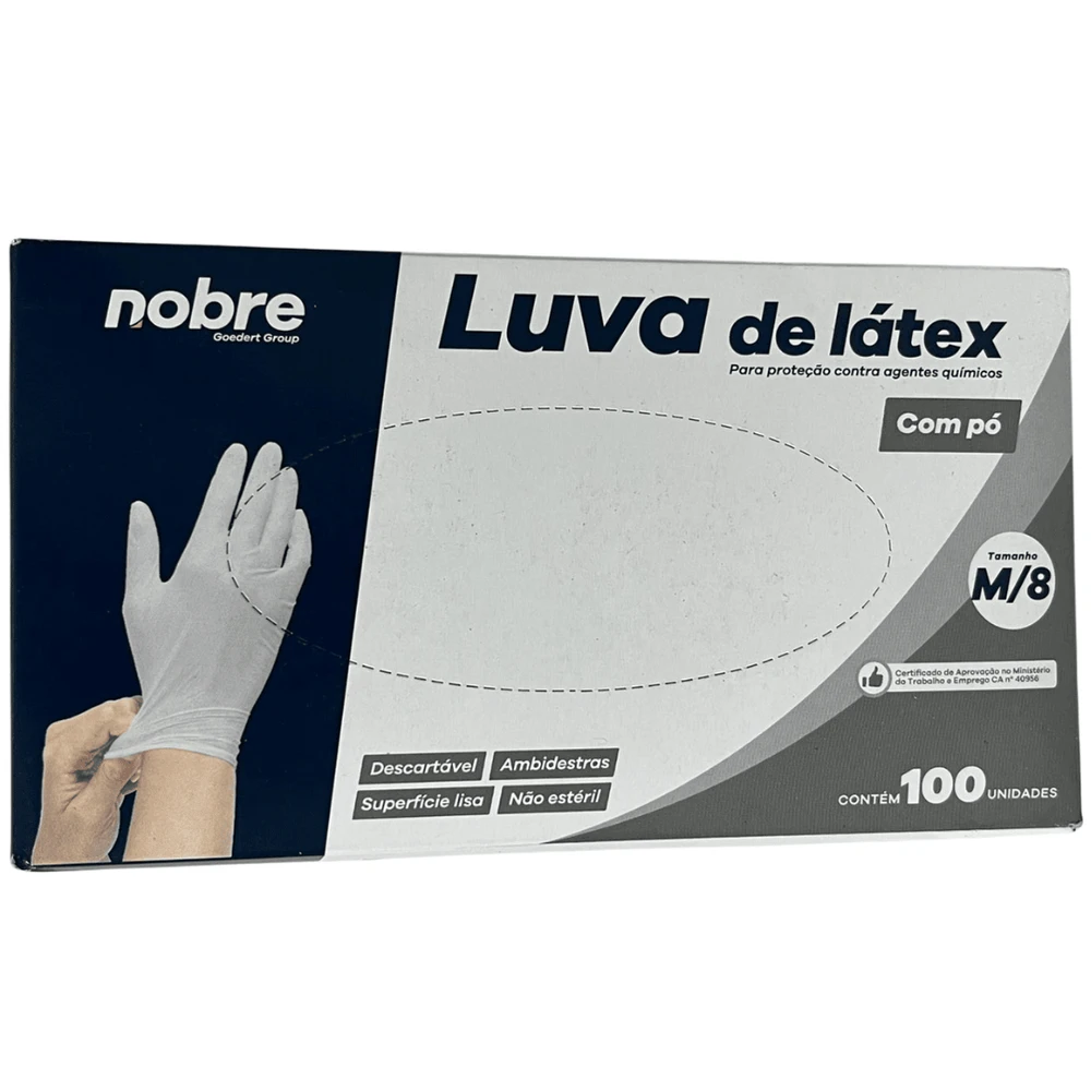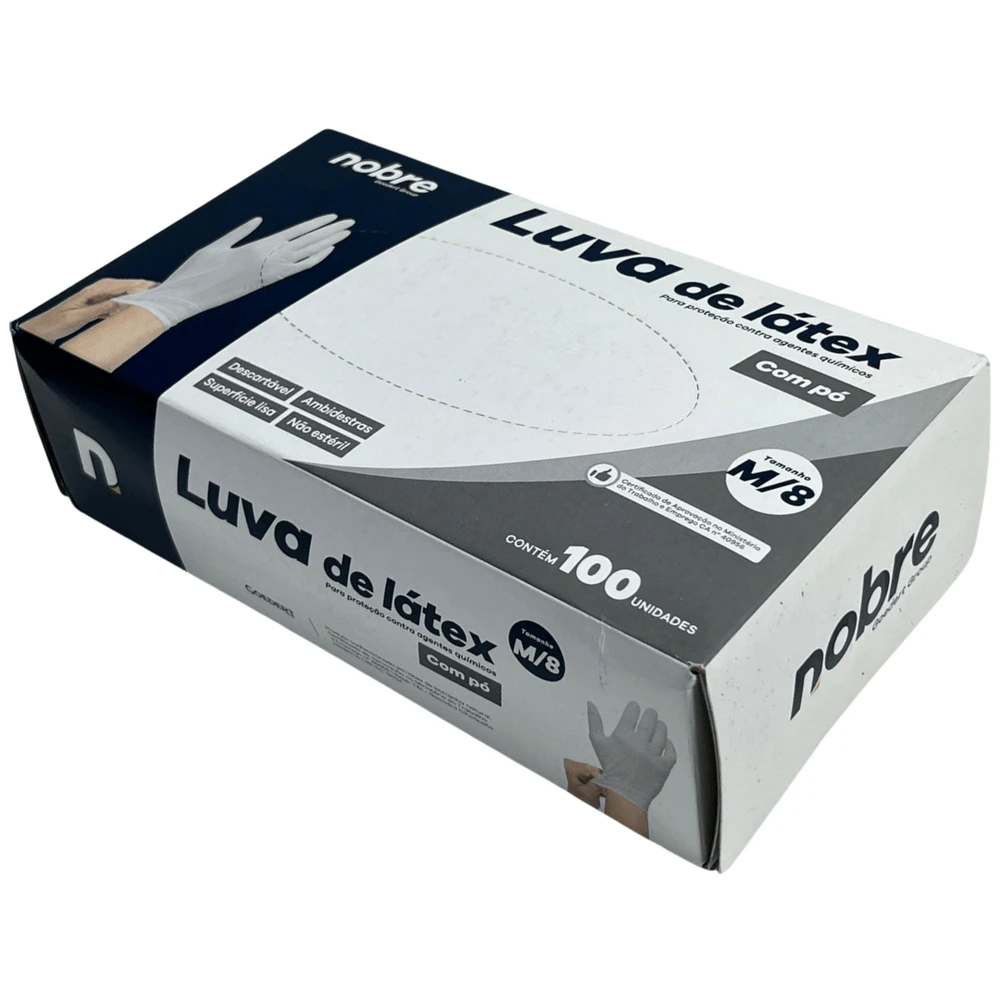 As luvas em látex Nobre são consideradas equipamentos de segurança para proteção individual, indicadas para proteção das mãos do usuário contra agentes químicos.