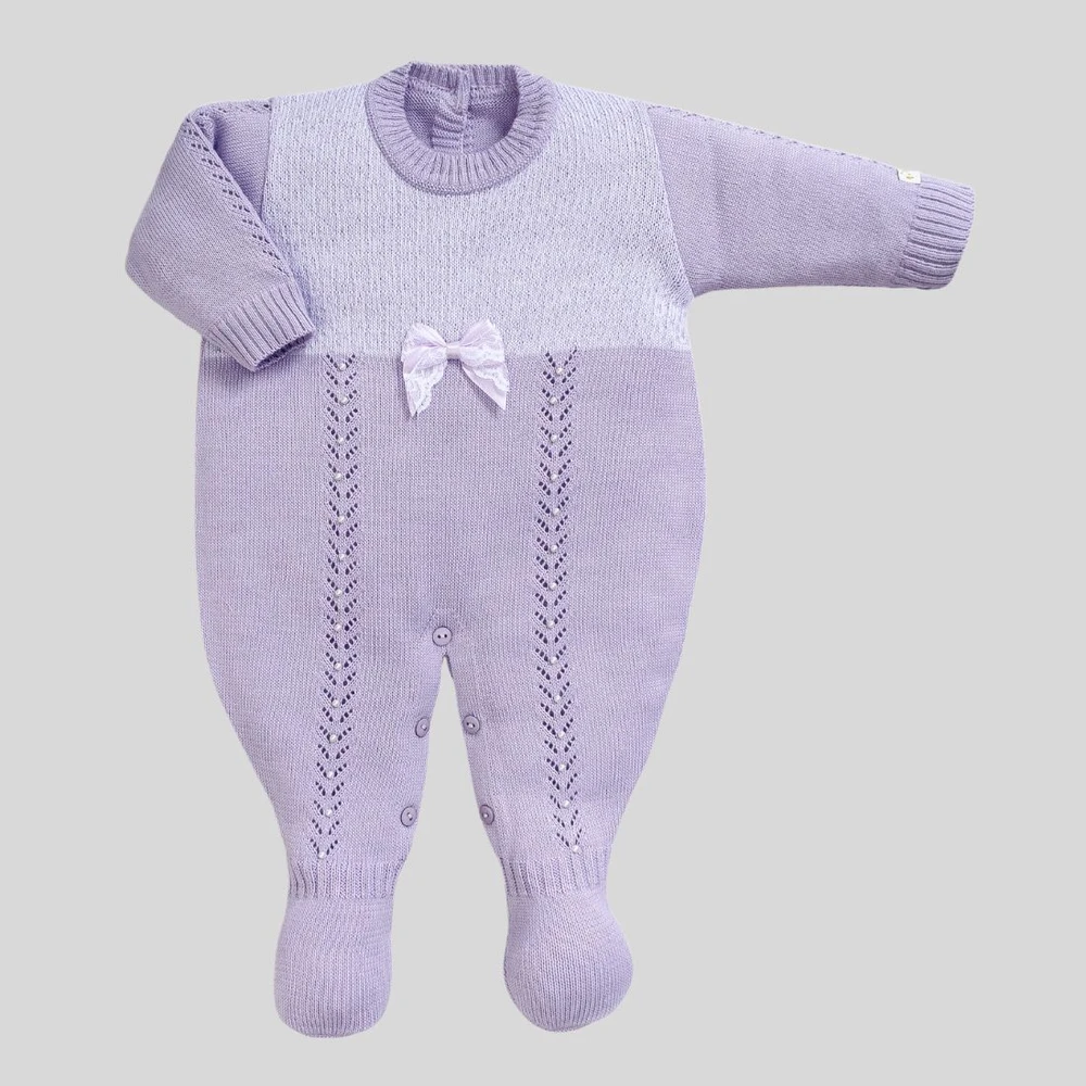 Macacão para bebê em tricô lilás: conforto e estilo para os primeiros meses da sua bebê.