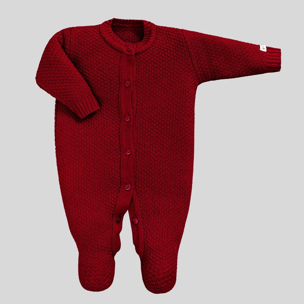 Macacão para bebê em tricô vermelho: conforto e proteção para os primeiros meses do seu bebê.