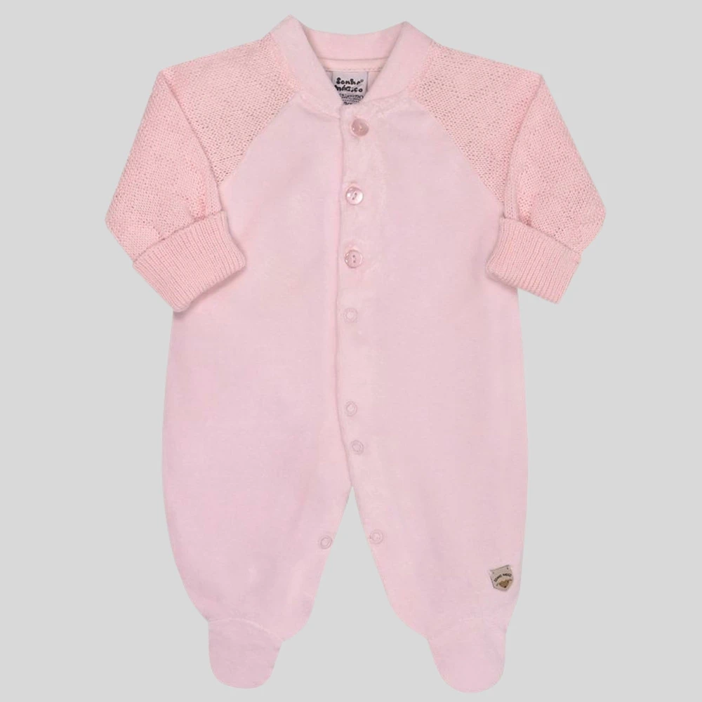 Macacão em Plush/Tricô Rosa Tamanho PRM