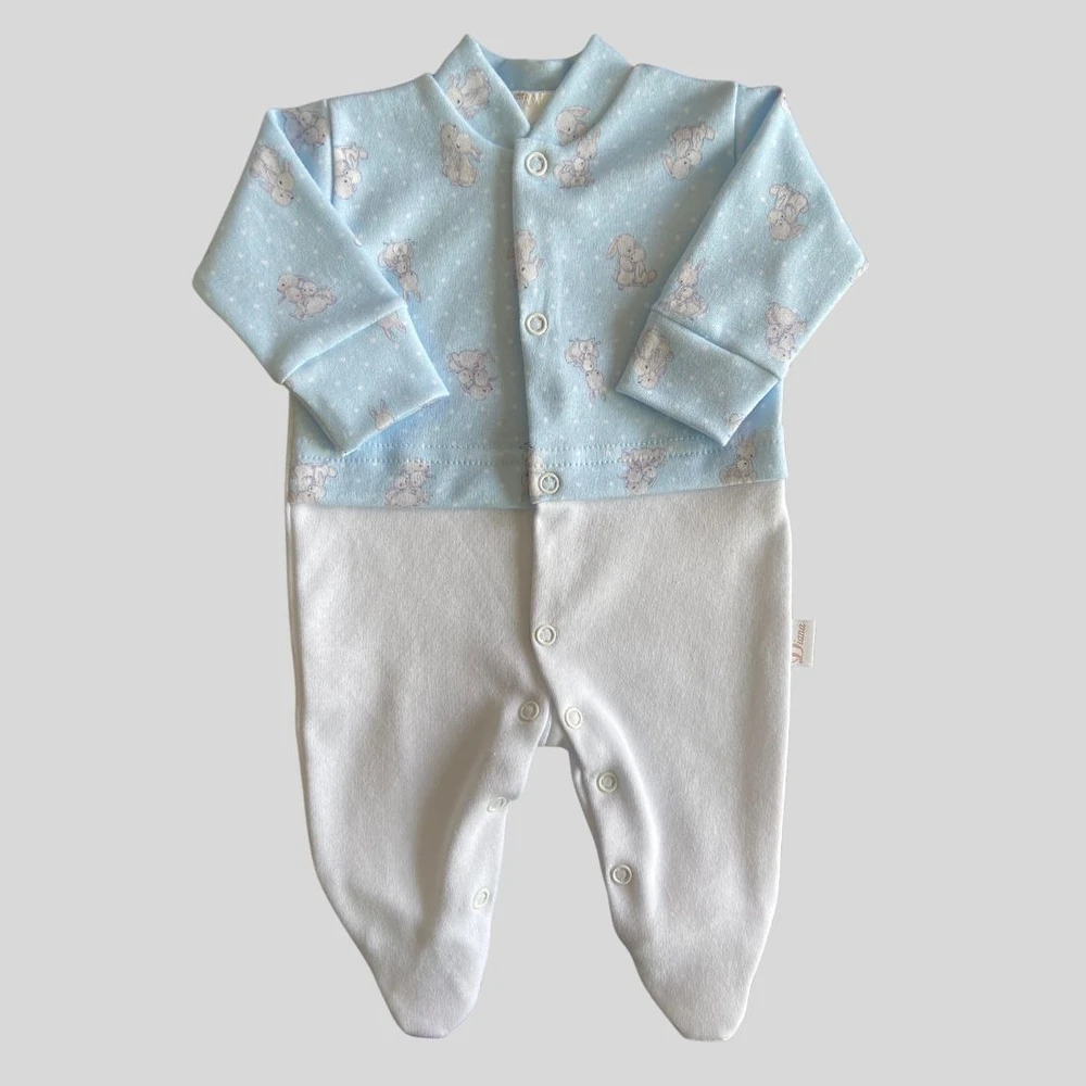 Macacão para bebê prematuro em suedine fio egípcio com estampa coelhinho Azul