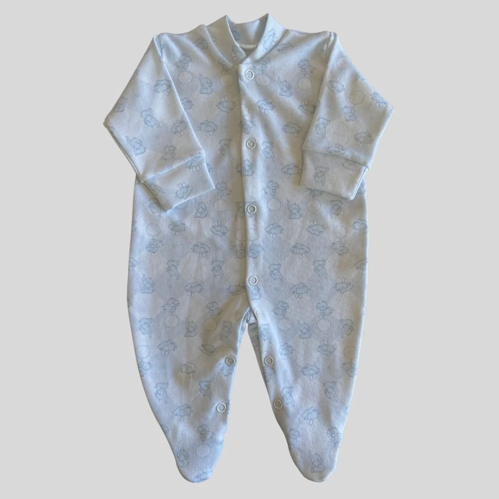Macacão para bebê prematuro suedine algodão egípcio estampa bebê elefante Azul