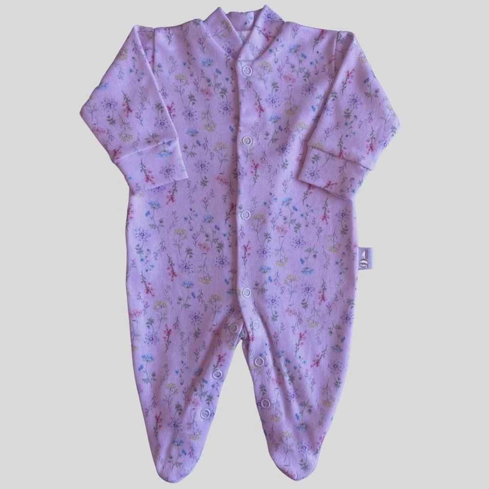 Macacão para bebê prematuro suedine algodão egípcio estampa flores Rosa