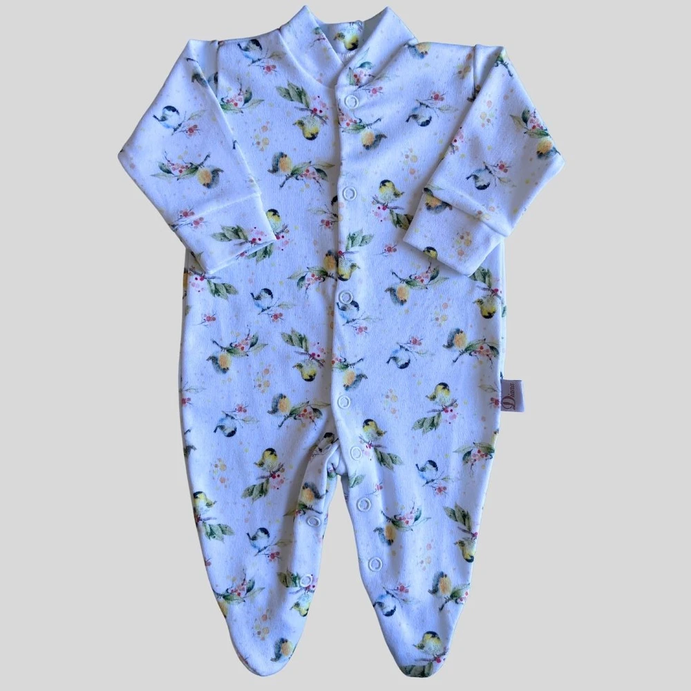 Macacão para bebê prematuro suedine algodão egípcio estampa passarinho Branco