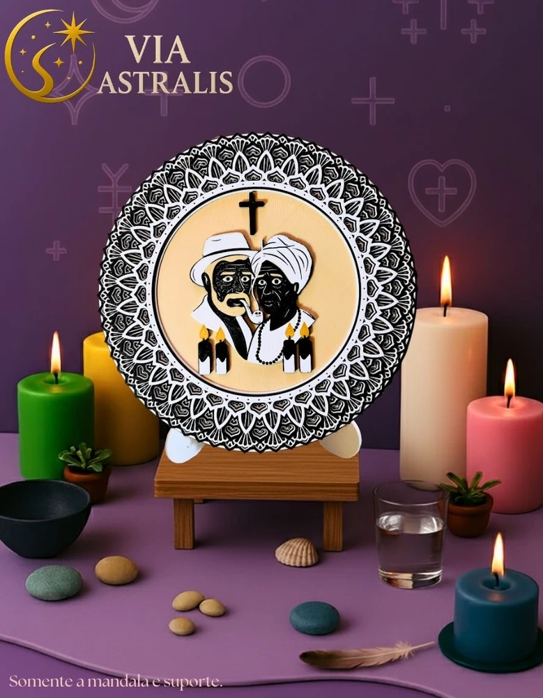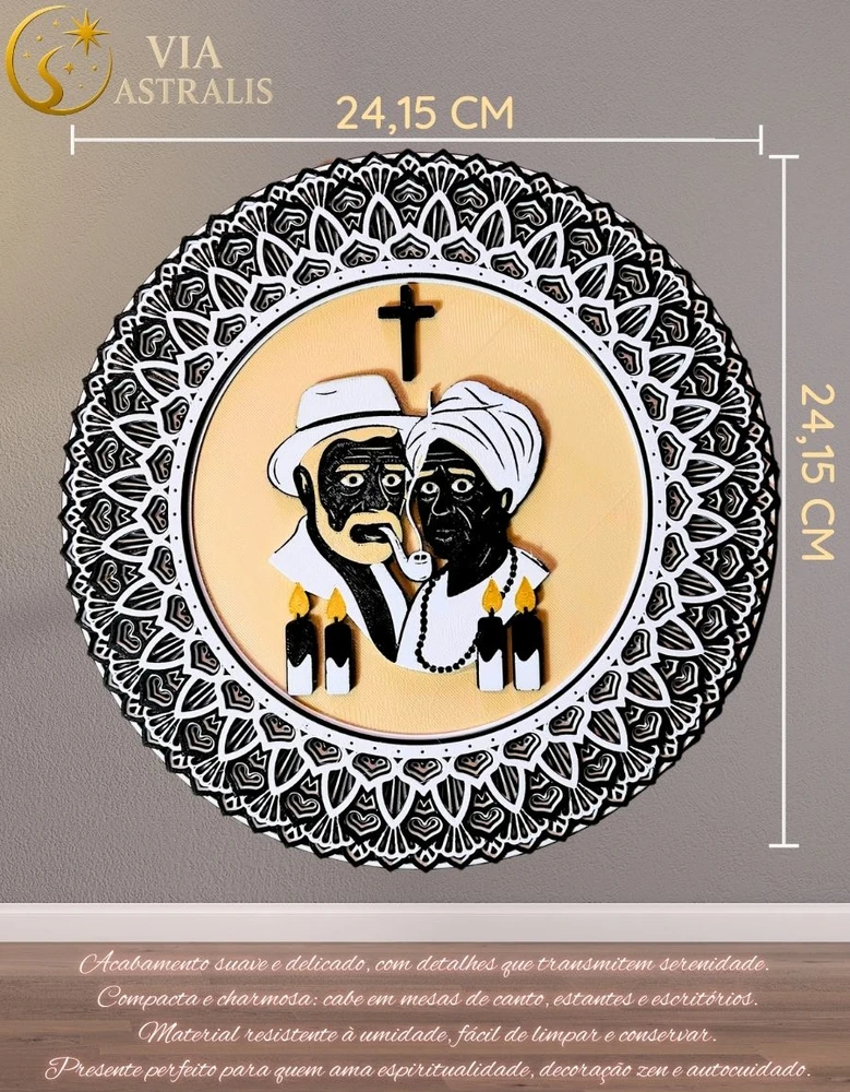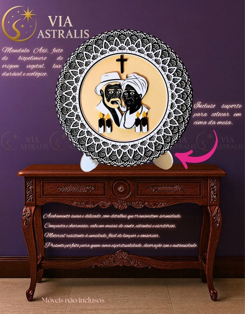 Descubra a Mandala Axé de Mesa dos Pretos Velhos da Via Astralis, um símbolo poderoso de proteção, sabedoria e conexão espiritual. Esta mandala exclusiva traz a representação dos Pretos Velhos, figuras emblemáticas da espiritualidade afro-brasileira, envoltas em um design detalhado que une tradição e arte com harmonia e equilíbrio.