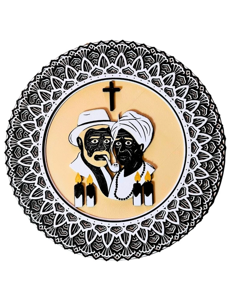 - Representação autêntica dos Pretos Velhos, símbolo de axé e proteção espiritual.