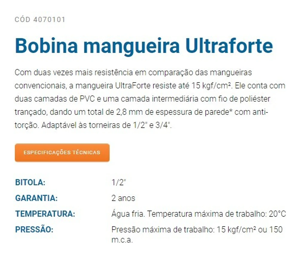 A Mangueira Jardim Antitorção Vicqua Ultra Forte 10 Mts Cor Azul-marinho é perfeita para quem busca durabilidade e resistência. Com acessórios inclusos como adaptador, engate e esguicho, ela oferece praticidade e versatilidade para regar seu jardim. Seu diâmetro de 1/2" permite uma vazão de água eficiente, enquanto seu material em PVC de duas camadas e fio de poliéster garante maior resistência a torções e rupturas. O modelo Azul Extra Forte é ideal para quem procura uma mangueira de qualidade e durabilidade.