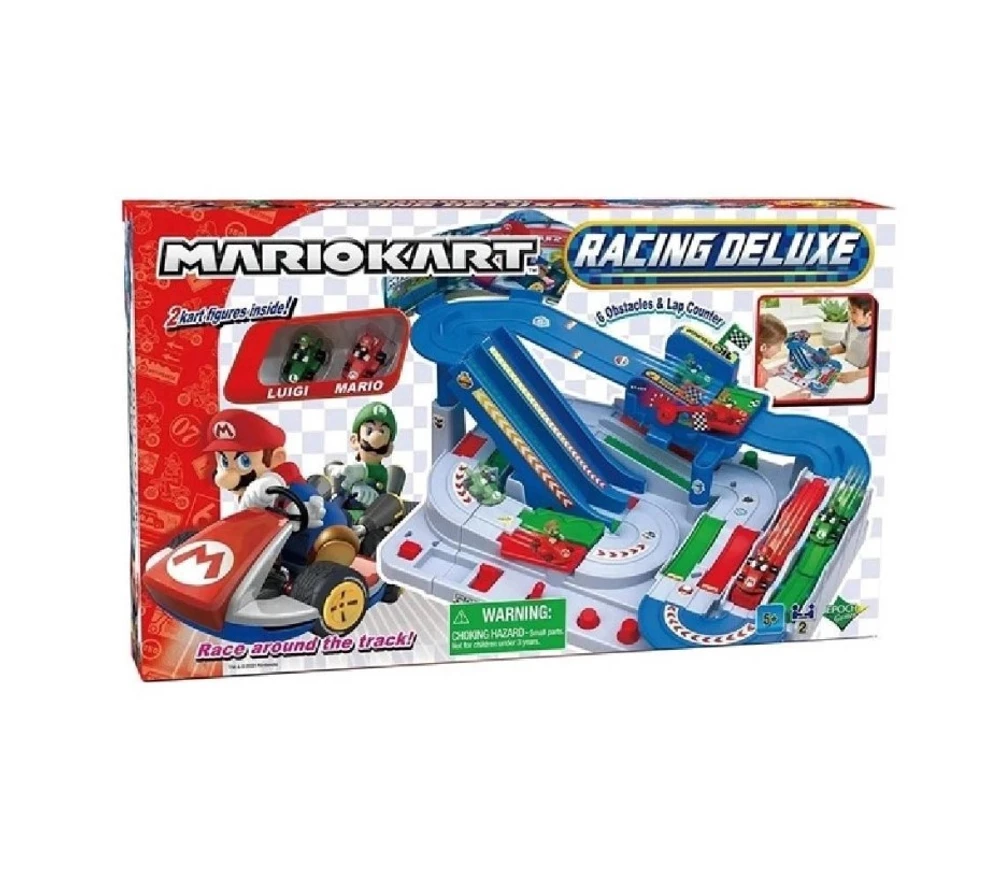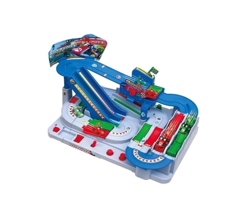 Corrida de circuito de ação projetado e inspirado no mundo de Mario Kart 6 Truques e Contador de voltas, rápido, mas com cuidado, conduza seu kart usando os 3 botões, controle deslizante e trave de inclinação, passando pelos 6 truques complexos para alcançar o objetivo Qual deles fará cinco voltas primeiro Imagens ilustrativas.