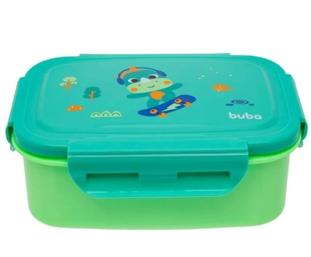 MARMITABOX DINO BENTO BUBA ZOO Bento Box Zoo da Buba é ideal para transportar lanchinhos, quentes ou frios, em passeios, viagens e à escola. É anti-vazamento, leve e fácil de abrir e fechar. Possui divisória ajustável para separar os alimentos Compartimento interno com aço inoxidável Tampa com vedação anti-vazamento Para alimentos quentes e frios Capacidade: 600 ml Podem ir ao freezer e lava-louças (somente na prateleira superior) Pode ir ao micro-ondas (sem a parte de aço inoxidável) Composição: Pote: 100% Polipropileno (PP) Vedação: 100% Silicone Interior: Aço Inoxidável Medidas aproximadas do produto: 14 cm x 19 cm x 7cm