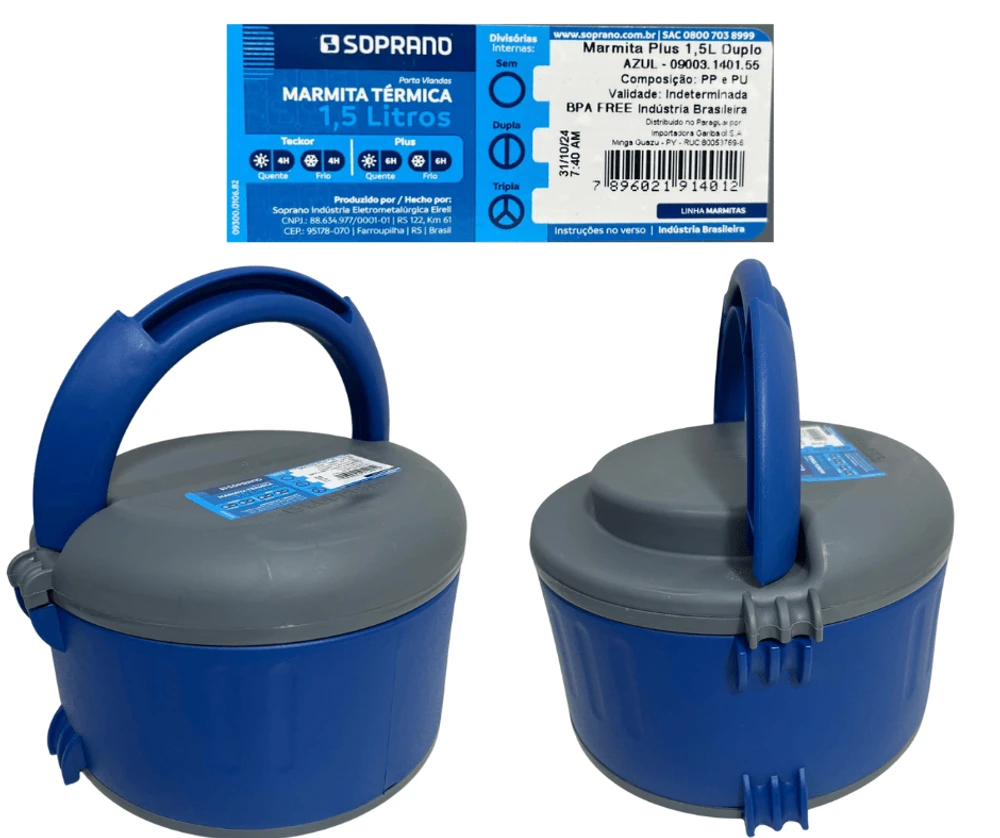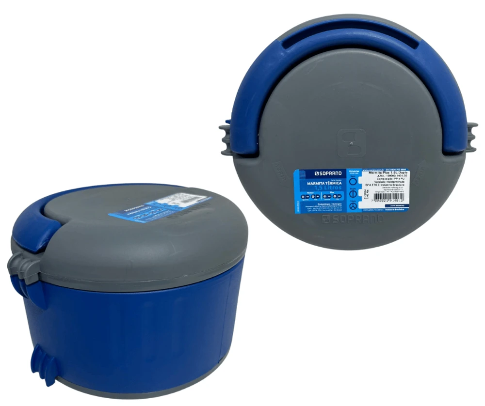 Marmita Termica Plus Com Alça 1,5L Dupla Azul Soprano