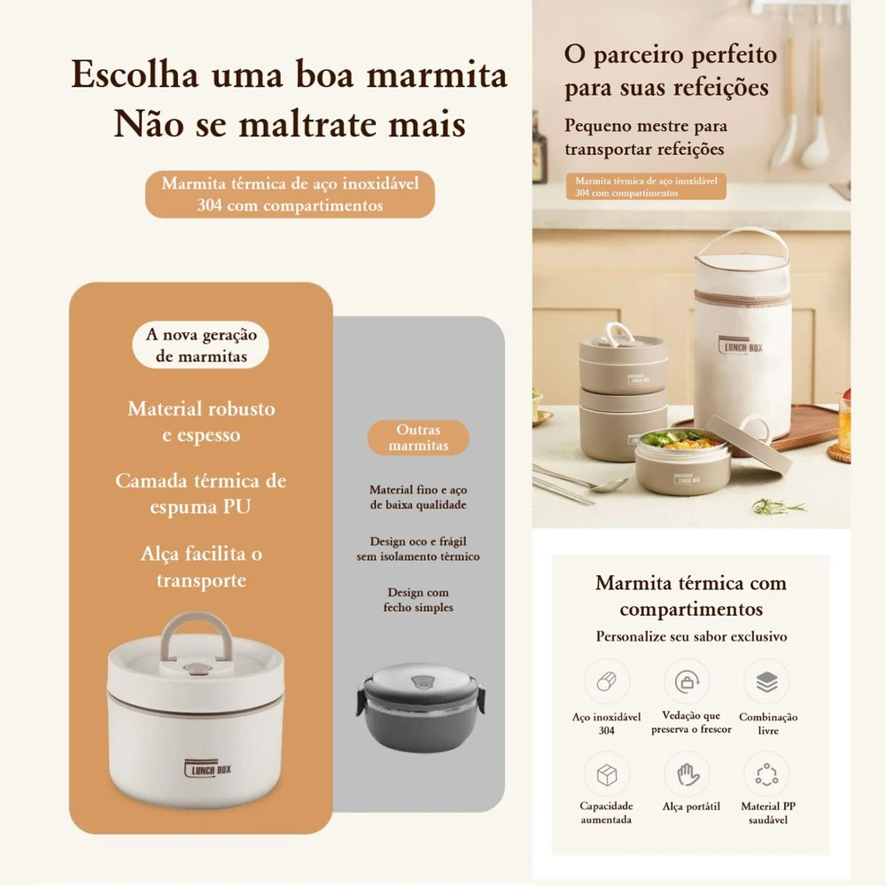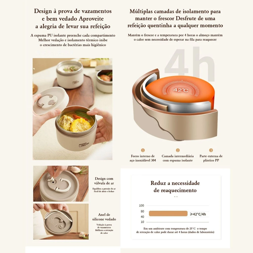 Ideal para conservar a temperatura dos alimentos por mais tempo;